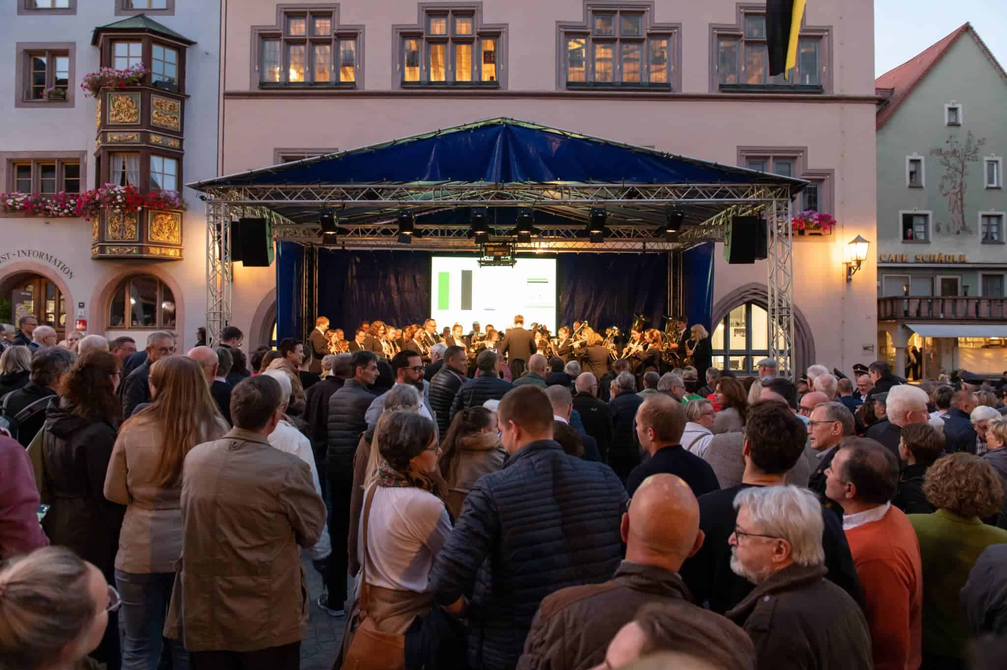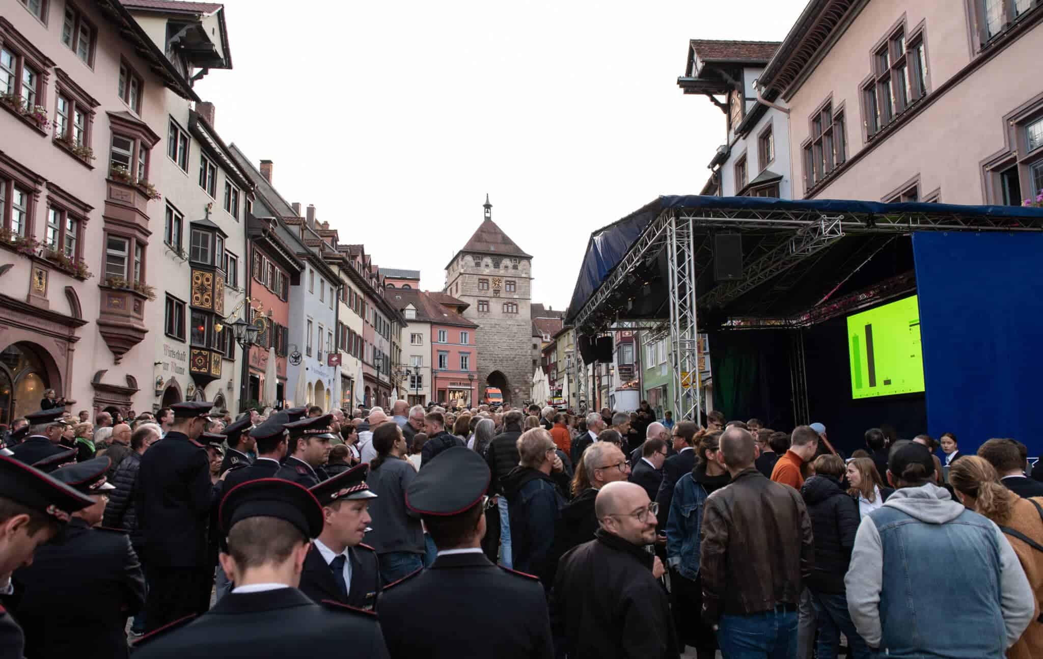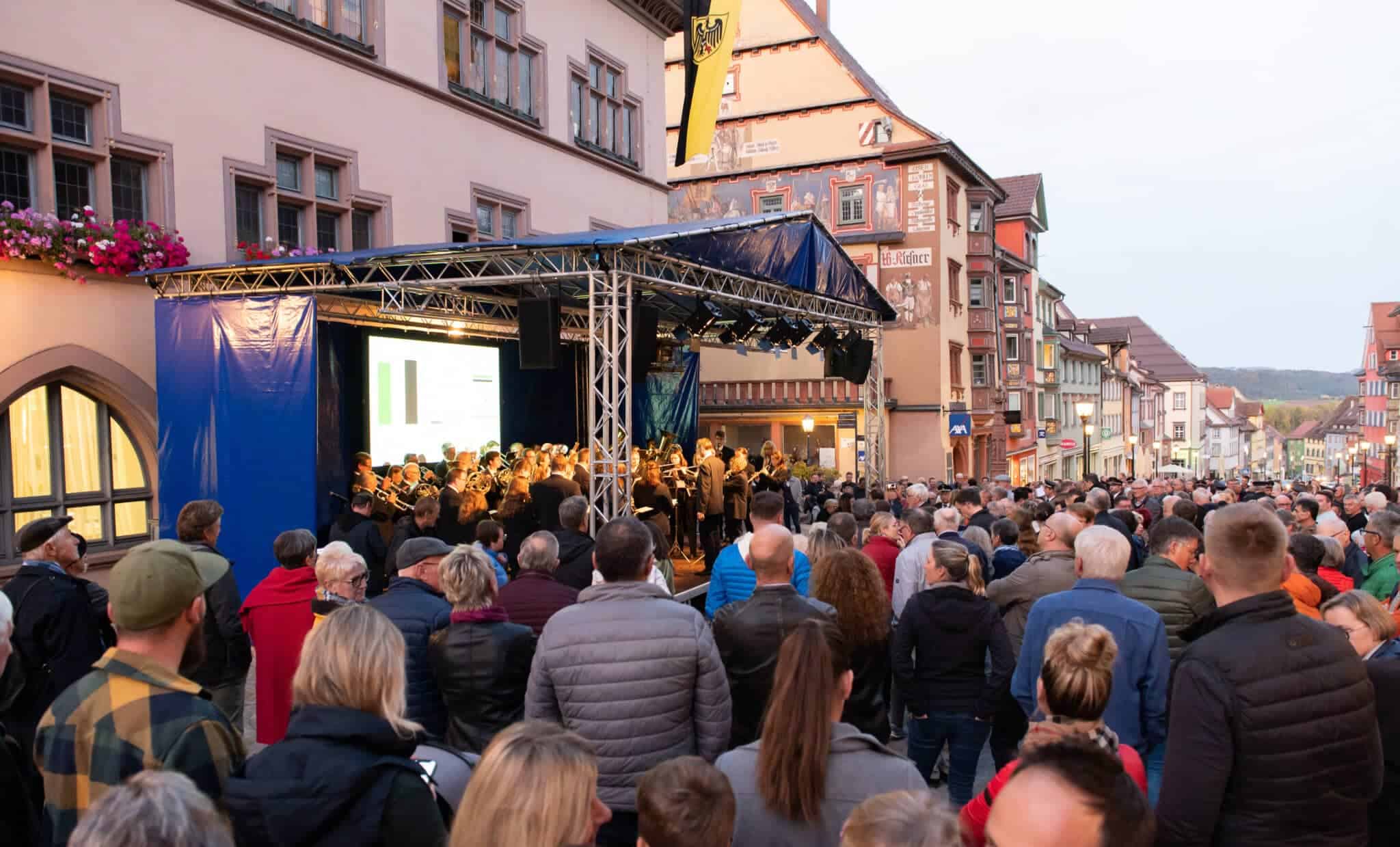 Die Techniker von Power4Events haben die Bühne vor dem Alten Rathaus längst wieder hergerichtet. Dort wird die Auszählung der Stimmen übertragen, dort wird Ralf Broß dann den Namen seines Nachfolgers bekannt geben. Und die Musik spielt. Die Stadtkapelle war vor drei Wochen, zum Ende des ersten Wahlgangs, schon erschienen, musste dann aber nicht in Aktion treten. Denn damals gab es noch kein eindeutiges Ergebnis. Heute wird das der Fall sein.
