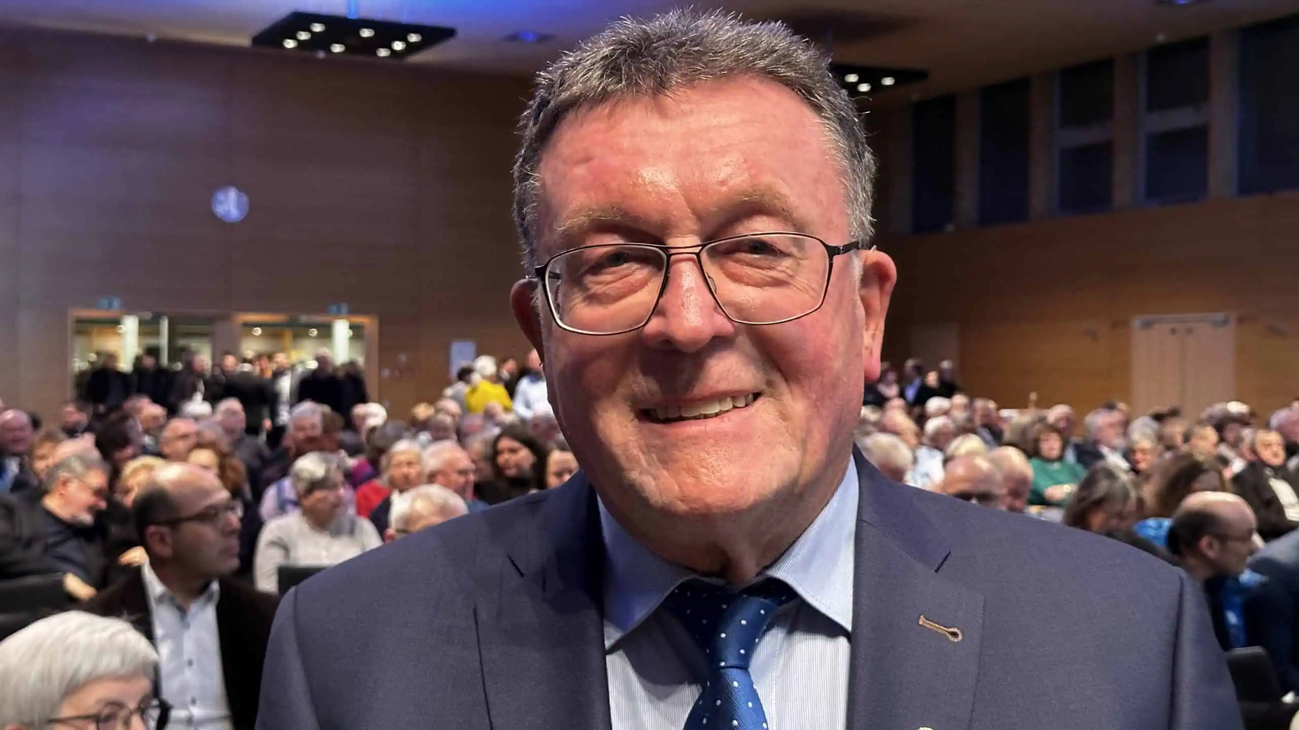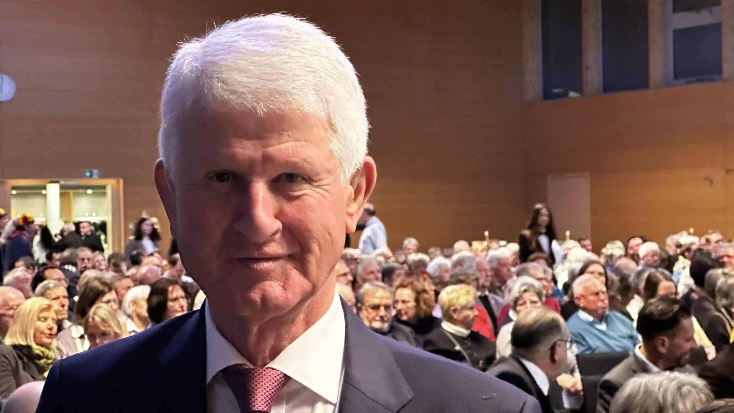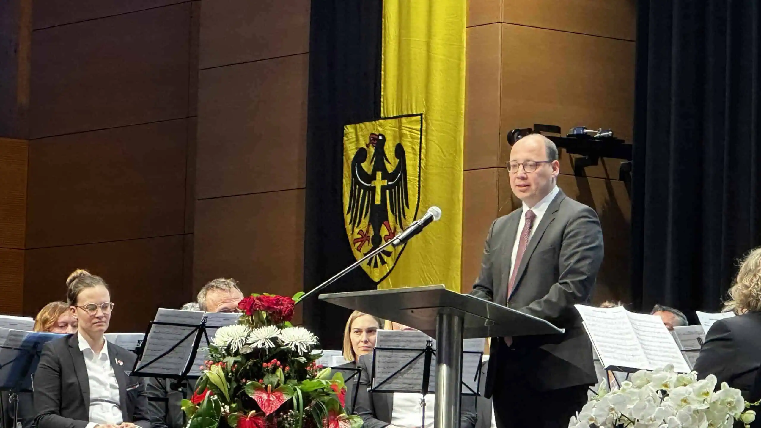 (Rottweil). Typisch Dr. Christian Ruf: Er entert beschwingt die Bühne, das Jackett geöffnet, schiebt sich zwischen Blumenschmuck und den Musikern der Stadtkapelle durch und richtet an diese einen Scherz. Vernehmbares Gelächter aus dem Rund der Musiker. Dann wendet sich Ruf seinem Publikum zu, das Eis ist hier schon wenigstens angeknackst, fast schon gebrochen. Die Halle war gut gefüllt.