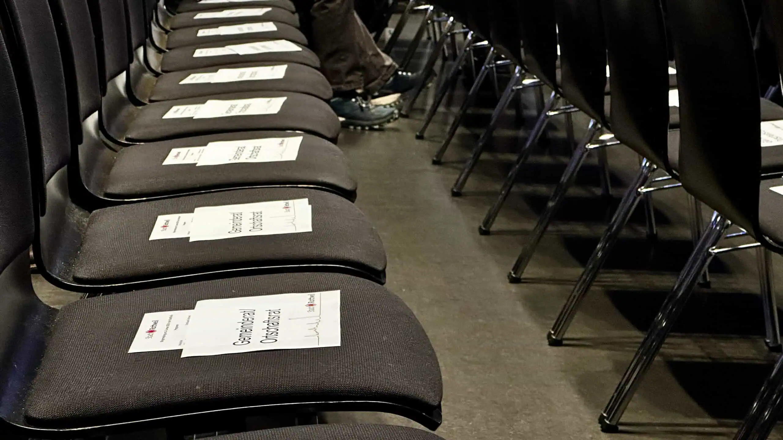 Das Machen war sein Thema. Worauf Ruf hiermit auch anspielte, war klar und sagte er auch selbst: den in Augen mancher gescheiterte Verkehrsversuch zur Beruhigung und Aufwertung der historischen Innenstadt – das Stichwort rief ein Raunen in den Reihen in der Halle hervor, teils Gekicher bis Gelächter.