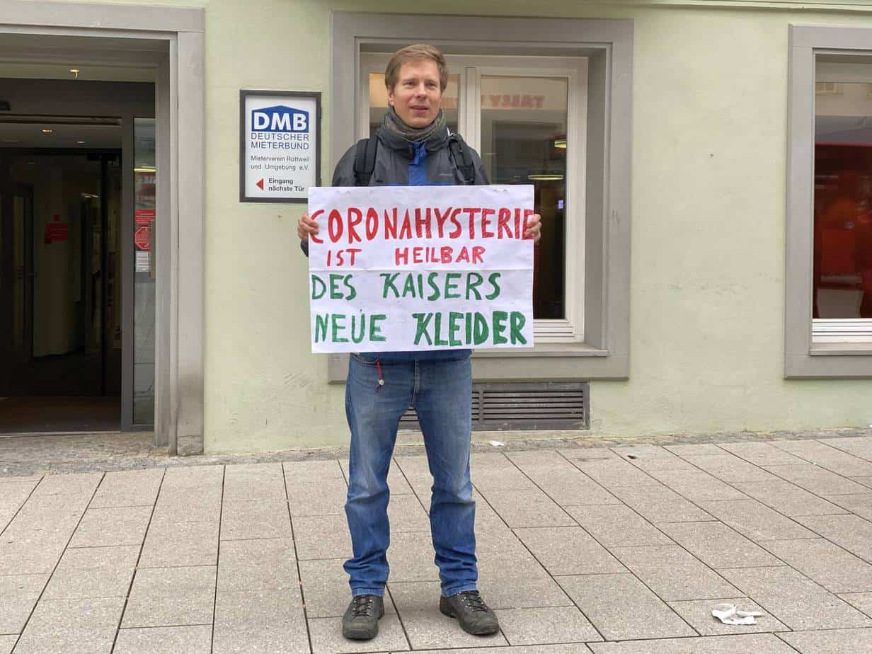 Auf die Hälfte ist die Zahl der Teilnehmer von der ersten auf die zweite Demonstration gegen die Corona-Maßnahmen in Rottweil am Donnerstag gesunken. Die Veranstalter hatten unter dem Motto „EIN-STEHEN für die Grundrechte sowie für eine offene und freie selbstbestimmte Gesellschaft“ zum friedlichen Protest aufgerufen. Auf eine Kundgebung verzichten sie ausdrücklich.