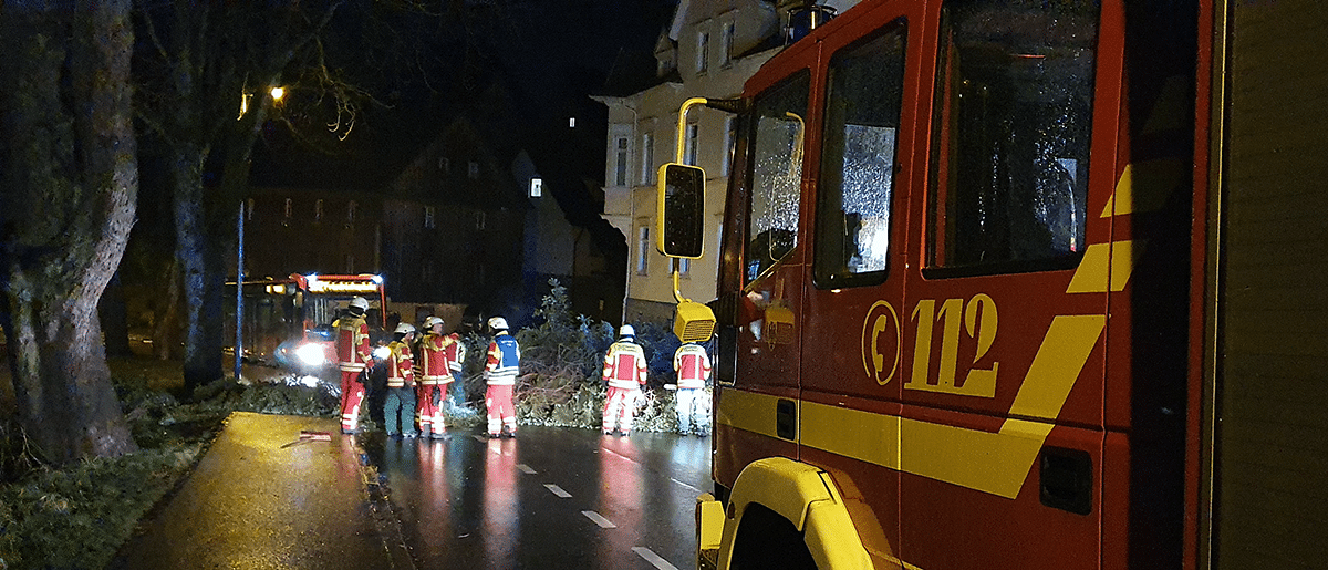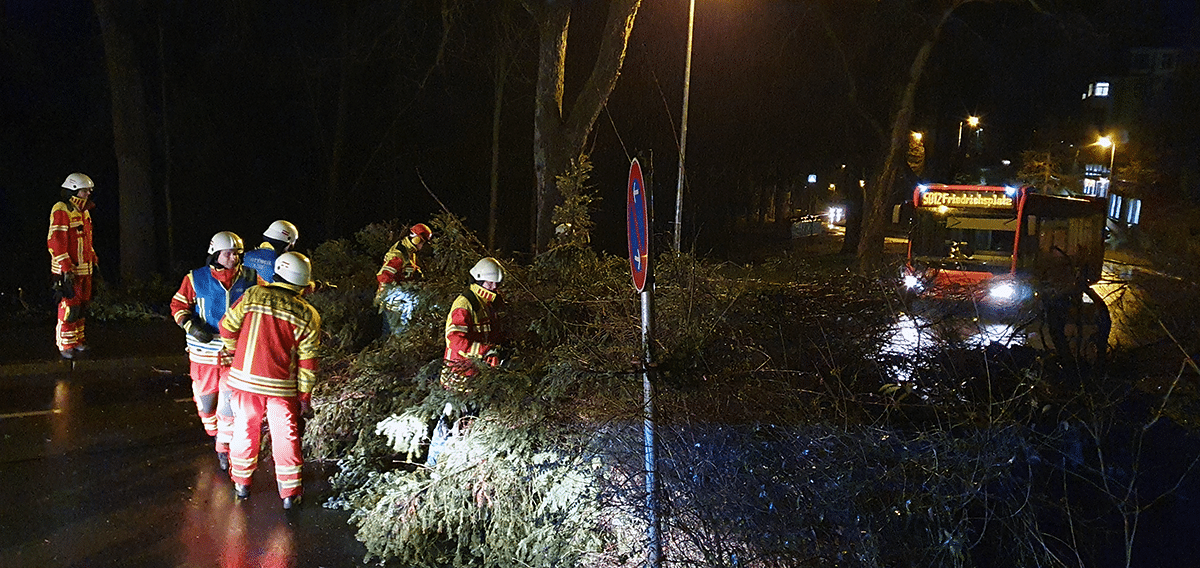 Seit etwa 2 Uhr hat es schon mehrere Einsätze der Feuerwehren im gesamten Kreisgebiet wegen des Sturms gegeben, so ein Feuerwehrsprecher. Die Feuerwehren sind zur Stunde im Einsatz. Details will der Sprecher später nennen.