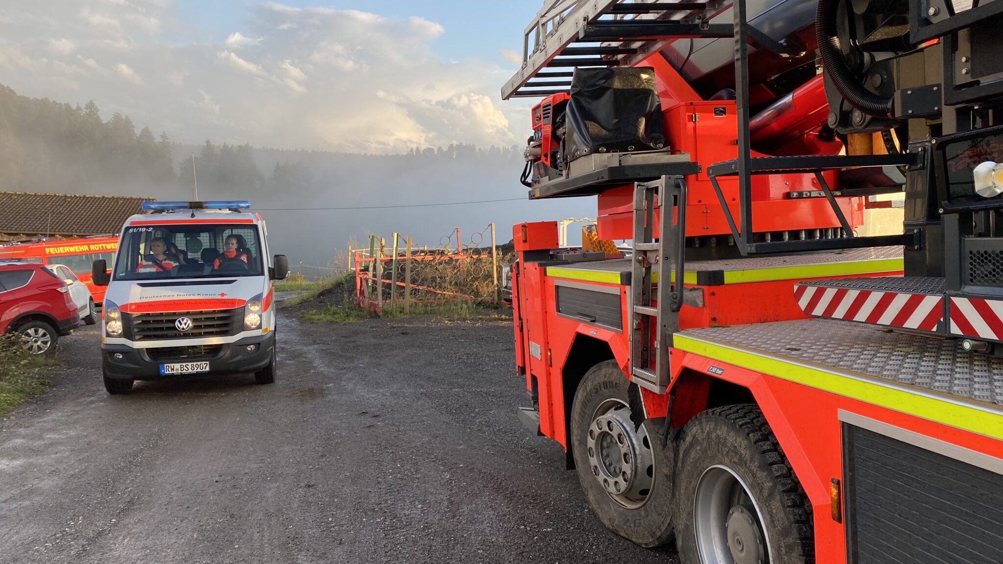 Das DRK war vor allem mit ehrenamtlichen Kräften stark vertreten und hielt sich zunächst zur Verfügung. Die Helfer übernahmen dann aber bald die Versorgung der Einsatzkräfte mit Essen und Trinken.