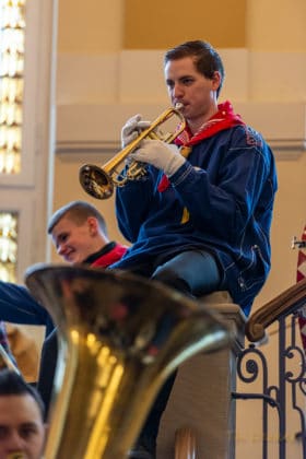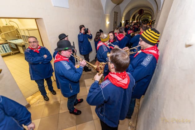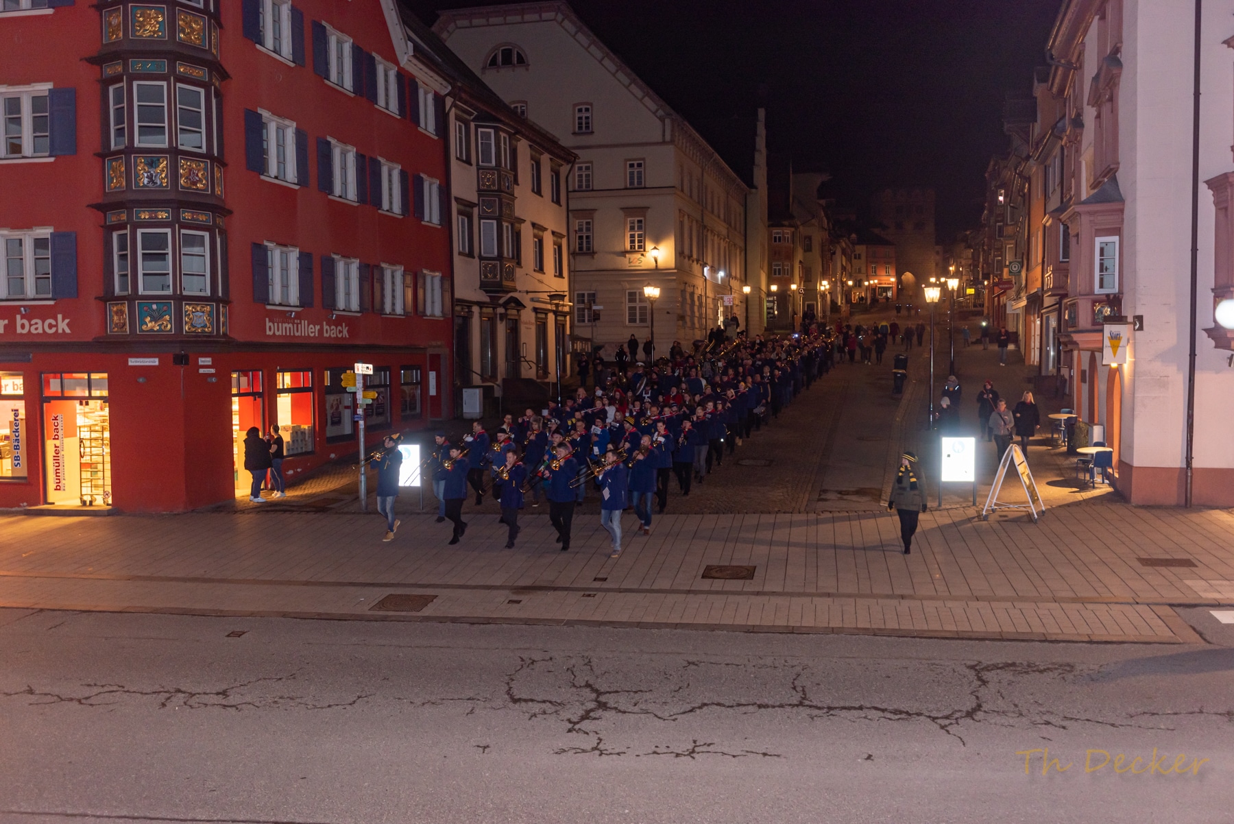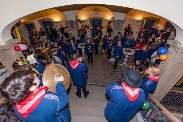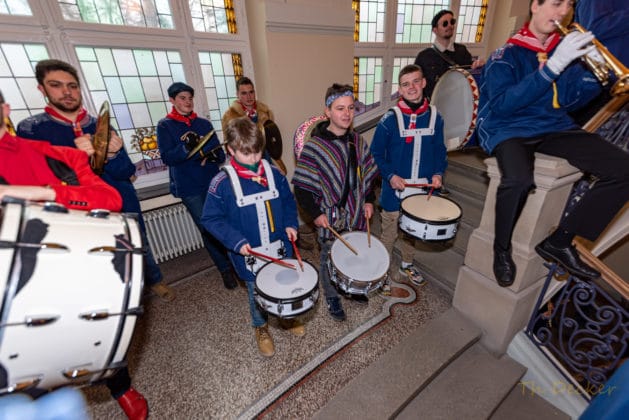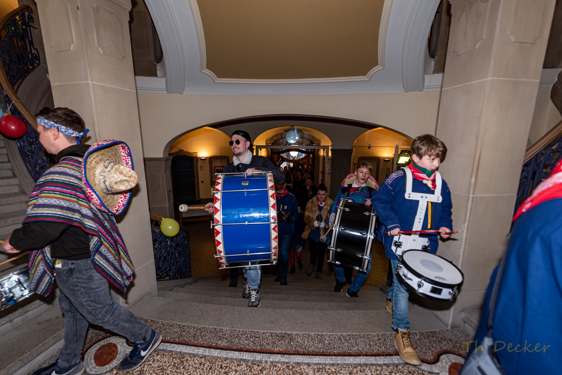Die Fasnet, die fünfte Jahreszeit hat in Rottweil begonnen. Mit der Schmotzigenkapelle – aktuell mit ‚zig Musikern riesig besetzt – und dem Rottweiler Narrenmarsch. Mit diesem sind sie am Morgen gegen 6 Uhr schon ins Konvikt eingezogen, freudig erwartet und begrüßt von Pfarrer Jürgen Rieger.