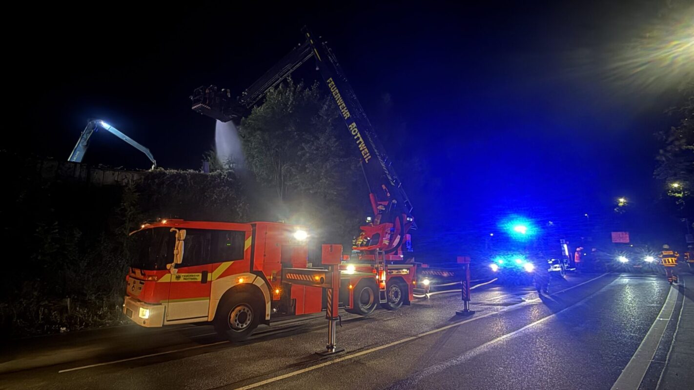 Gegen 23.50 Uhr konnte der Feuerwehrsprecher vermelden: Feuer aus, Brand gelöscht. Die Bereitschaft des DRK rückte ab. Ebenso etwa der in Rottweil stationierte Abfallbehälter Logistik des Landkreises, der für den Fall hinzugezogen worden war, dass das Feuer nicht rasch eingedämmt werden sollte.
