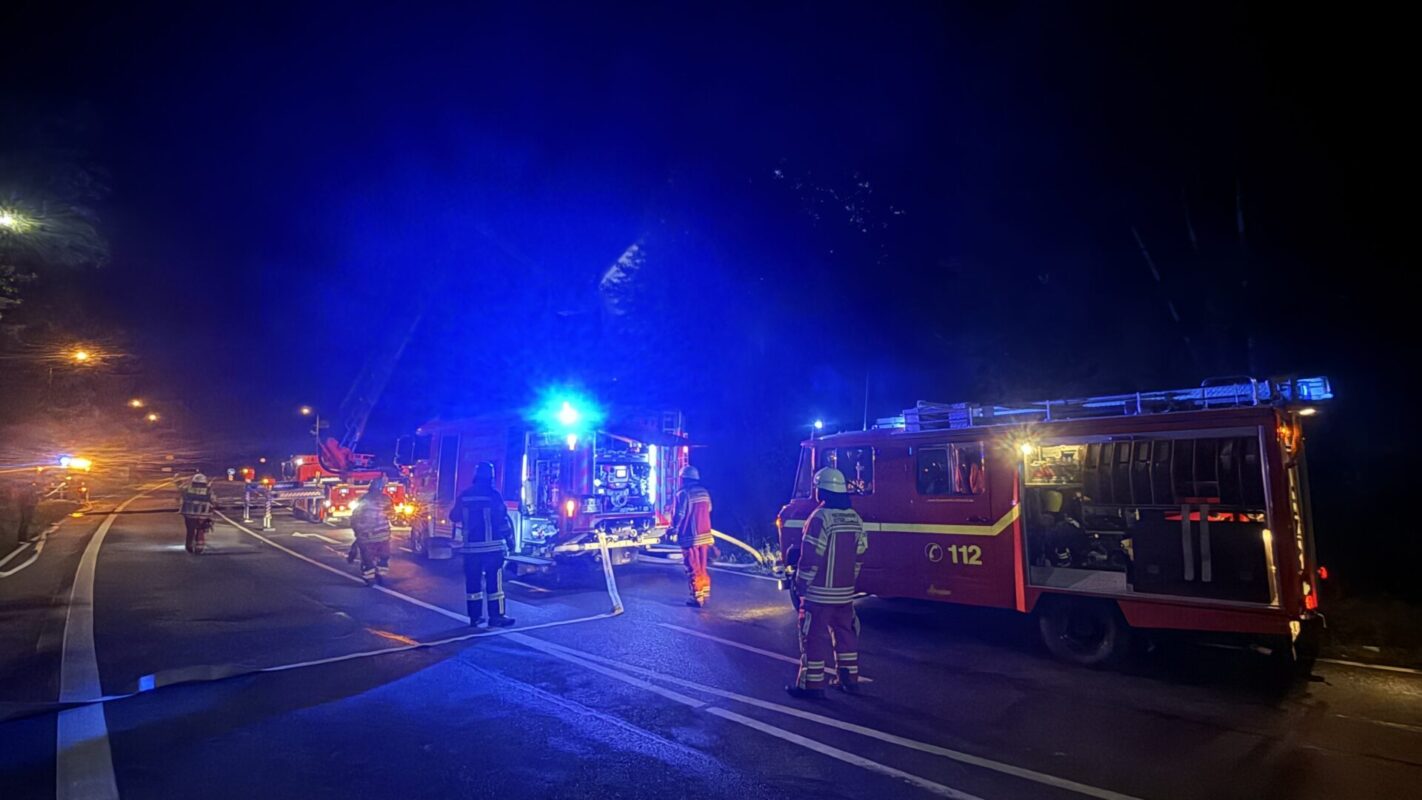 Kräfte des DRK waren ebenfalls angerückt. Darunter die Bereitschaft. Hinweise auf Verletzte gibt es glücklicherweise nicht. Seitens des Landkreises machte sich Kreisbrandmeister Philipp Glunz ein Bild von den Löscharbeiten.