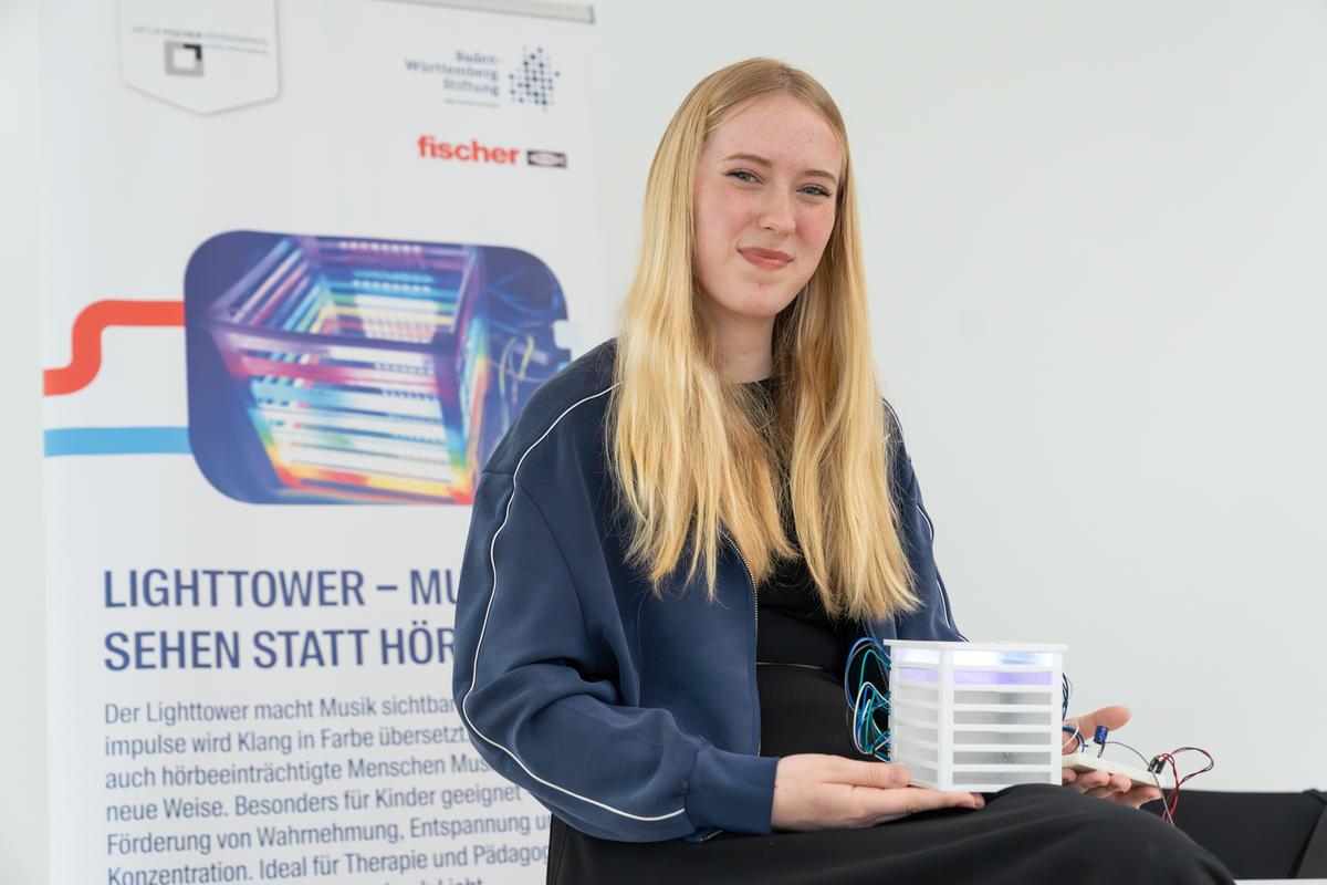 Musik ist nicht nur Klang – sie ist Rhythmus, Vibration, Bewegung. Diese Idee greift Liv Sutter (17) vom Droste-Hülshoff-Gymnasium in Rottweil auf. Mit dem sogenannten „Lighttower“ hat sie ein System entwickelt, das Musik visuell erlebbar macht – ganz besonders für Menschen mit eingeschränktem Hörvermögen. Für ihre Idee wurde die Schülerin am 24. Juli 2025 in Stuttgart mit dem 2. Platz beim Artur Fischer Erfinderpreis 2025 in der Kategorie „Berufliche Schulen und gymnasiale Oberstufe“ ausgezeichnet (1500 Euro Preisgeld). Dies teilte die Baden-Württemberg-Stiftung am Freitag mit.