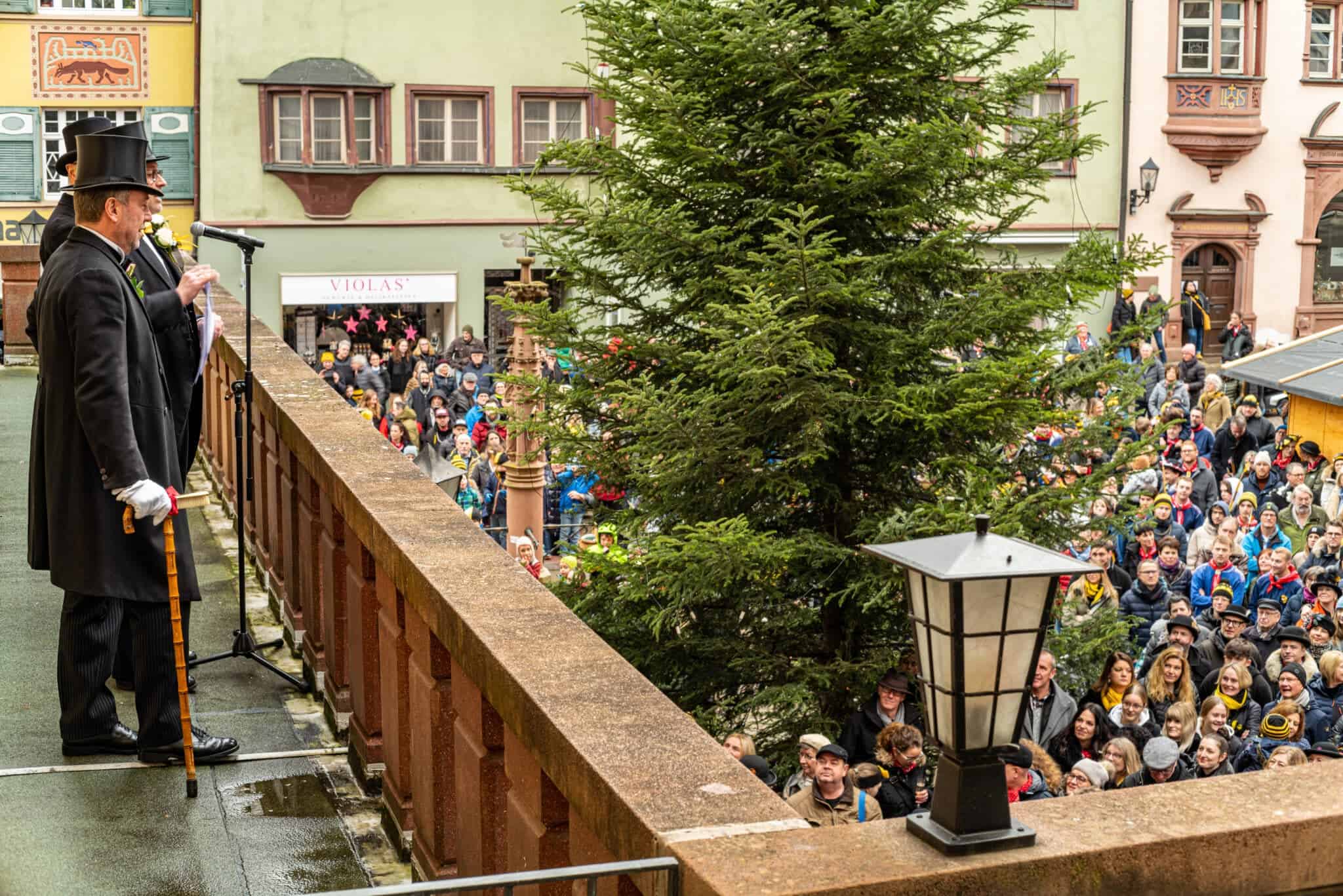ROTTWEIL. Unter großer Anteilnahme vieler Bürgersleut‘ ist am Dreikönigstag in der alten Reichs- und Narrenstadt Rottweil die Fasnet 2023 eröffnet worden. Mit deutlich vernehmbarer Freude sagte Narrenmeister Bechtold: „S‘isch endlich wieder soweit, mir hend a neue Fasnetszeit!“ Er sprach den hunderten Anwesenden aus der Seele. Und entsandte zur Freude aller die Abstauber.