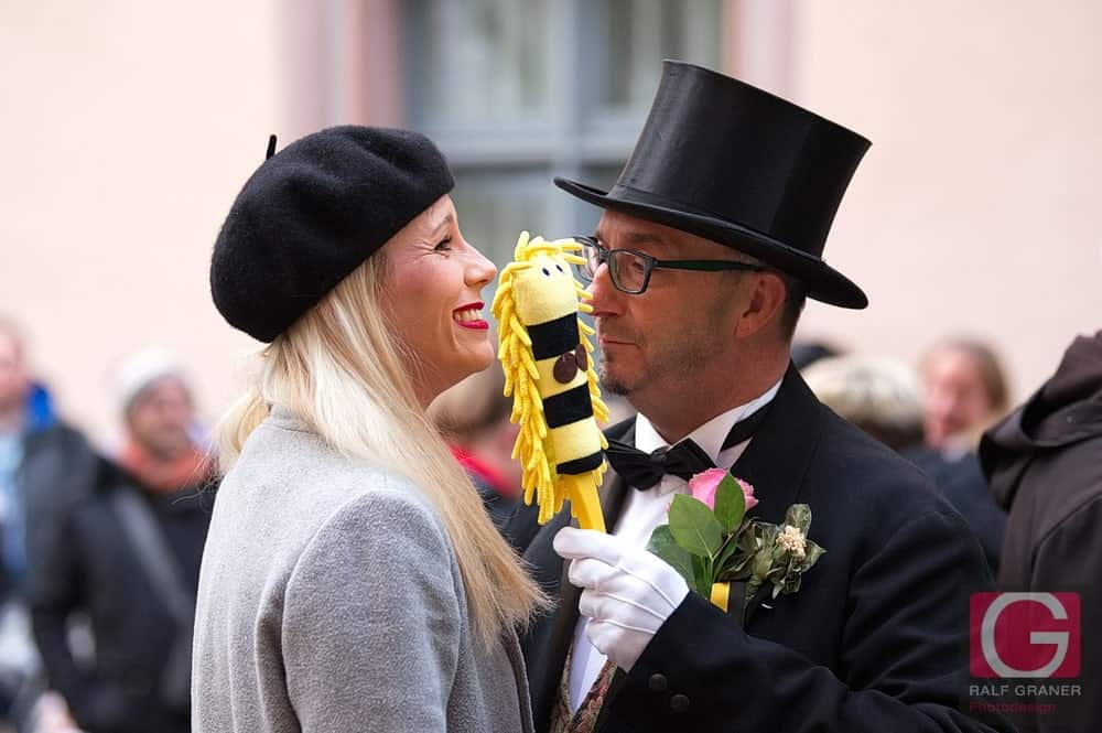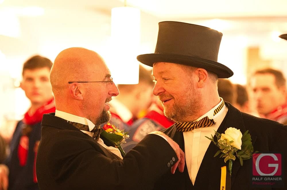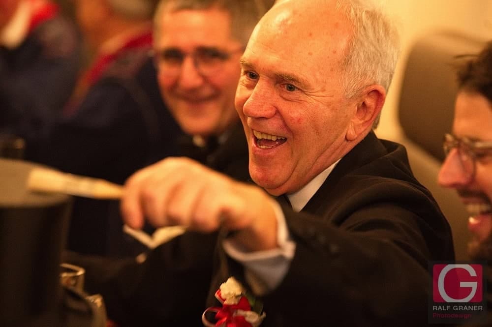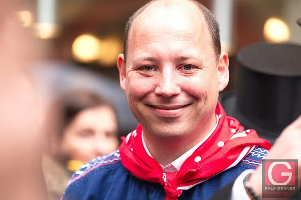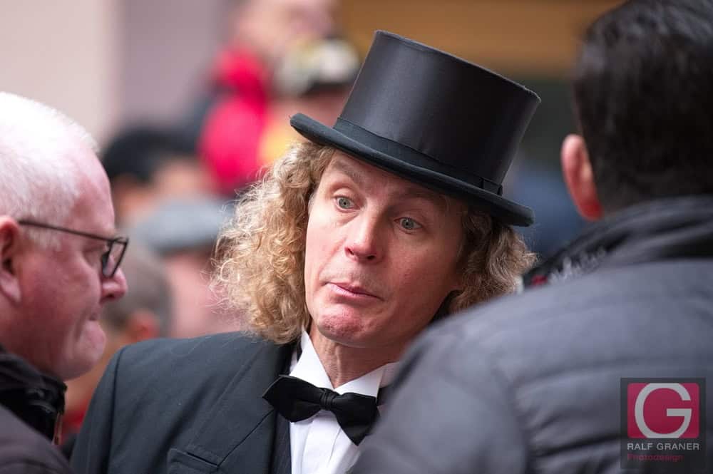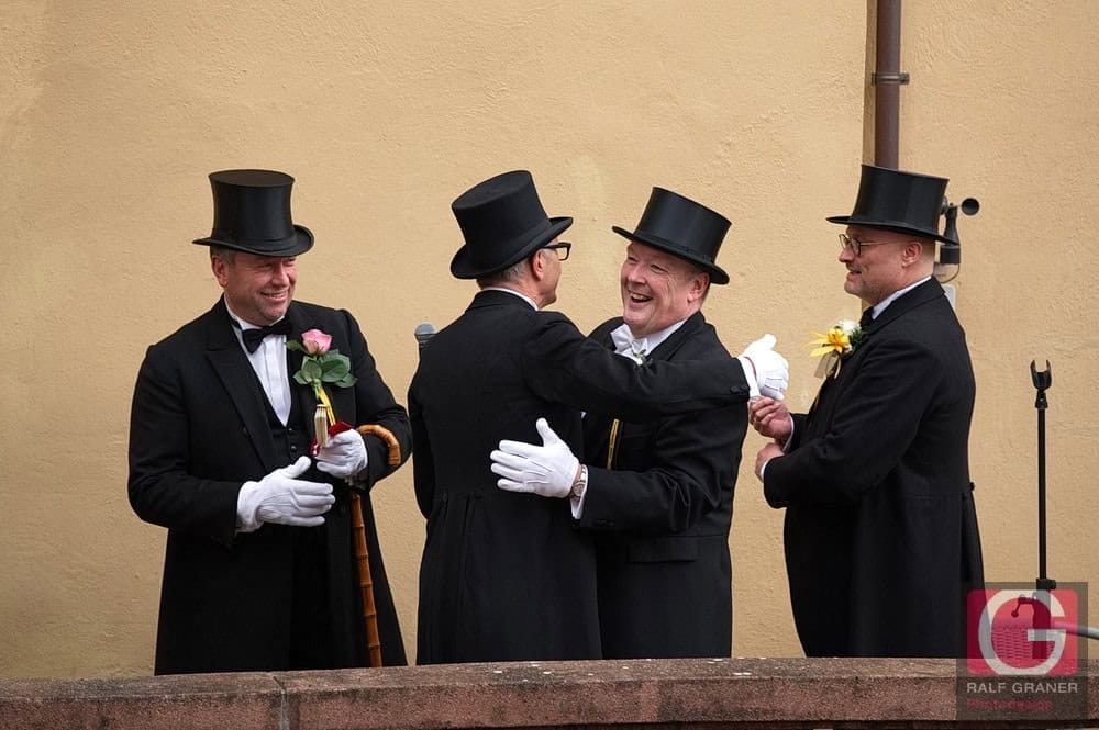 Narrenmeister Christoph Bechtold hat nach eigenen Angaben – und es blieb unwidersprochen, selbst der Amtsinhaber nahm das lächelnd hin – das Regiment in der Narrenstadt Rottweil von OB Dr. Christian Ruf übernommen. Dies mit einem hochqualifizierten Team aus seinen eigenen Reihen. Er wolle einen jeden nach dessen besonderen Qualitäten einsetzen, schwebte Bechtold vor. Darunter den Kassier der Rottweiler Zunft, Säckelmeister Stefan Roth, nicht etwa erwartungsgemäß in der Kämmerei, sondern als Beauftragten für die örtliche Gastronomie. Ihm stellte der Narrenmeister aber natürlich Unterstützer zur Seite, andernfalls hätte die Gefahr bestanden, dass die Menschen in den Gasthäusern künftig nur Wasser trinken dürften. Zum Hintergrund: Roth ist Abstinenzler, nimmt damit eine gewisse Sonderstellung in der Zunft ein.