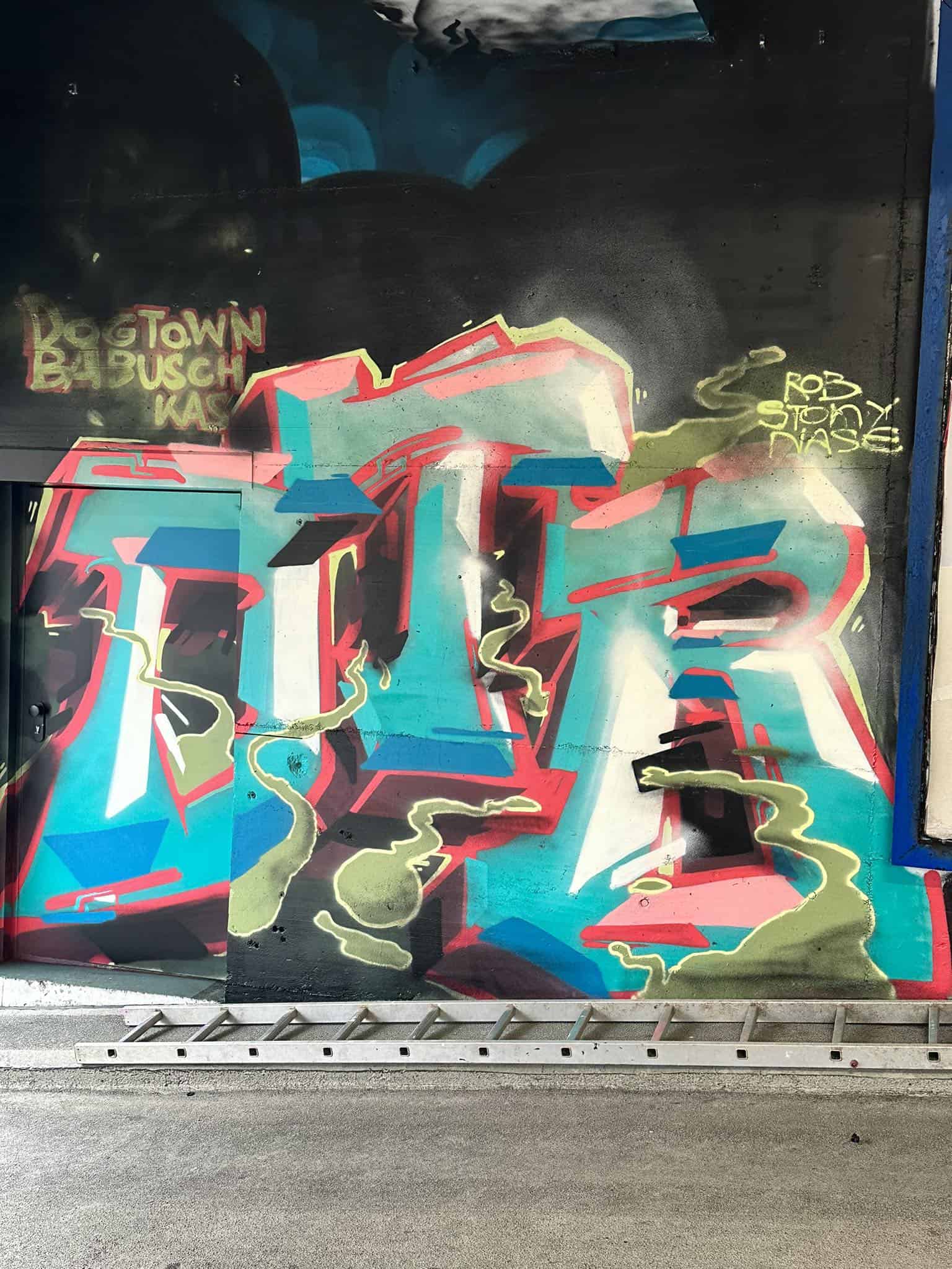 (Rottweil). Bereits im Sommer 2019 durften sich Graffiti-Künstler am bis dahin tristen Gebäude in Rottweil austoben. Die Aktion hatten damals Einzelhändler Michael Grimm und Werber / Künstler / Skater Robert Hak zusammen gestartet. Nun kam es zu einem Update, einer Wiederholung, wie auch immer. Diesmal neben Hak der Initiator: Künstler Tobias „Nase“ Küspert.