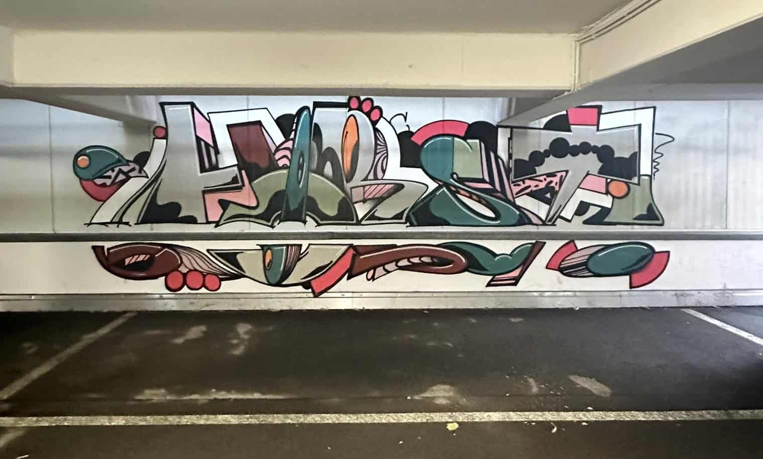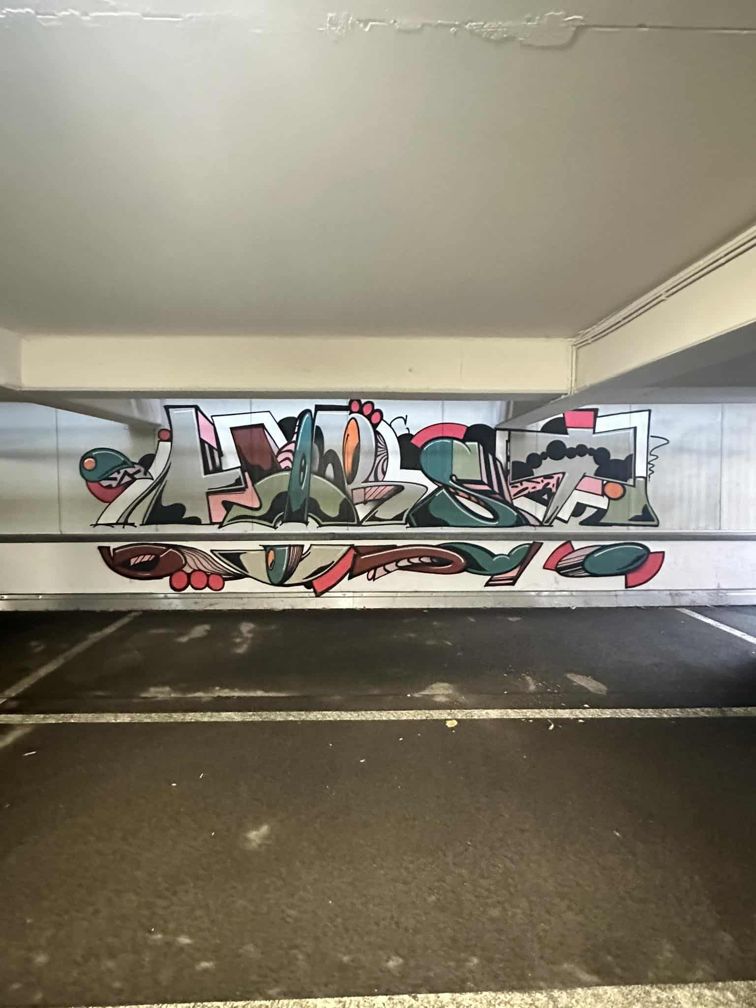 18 Graffiti-Sprayer haben sich am Wochenende zwei Tage lang Farbe mit hunderten Dosen Farbe das Rottweiler Parkhaus am Kriegsdamm vorgenommen. Herausgekommen ist eine starke Kunstaktion. Die zweite ihrer Art.