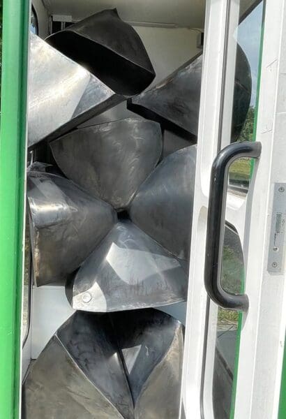Komplett voll ist das Hausener Häuschen nun seit Mittwoch mit Bachs Sprech-Stahl. Ein größeres und mehrere kleine Objekte füllen die Kubatur ziemlich restlos aus. „Hat auf den Millimeter gepasst“, bilanziert Bach zufrieden und klingt dabei auch ein wenig verschmitzt.