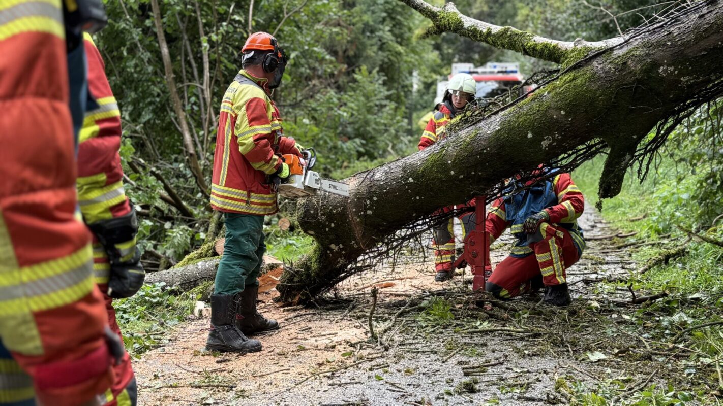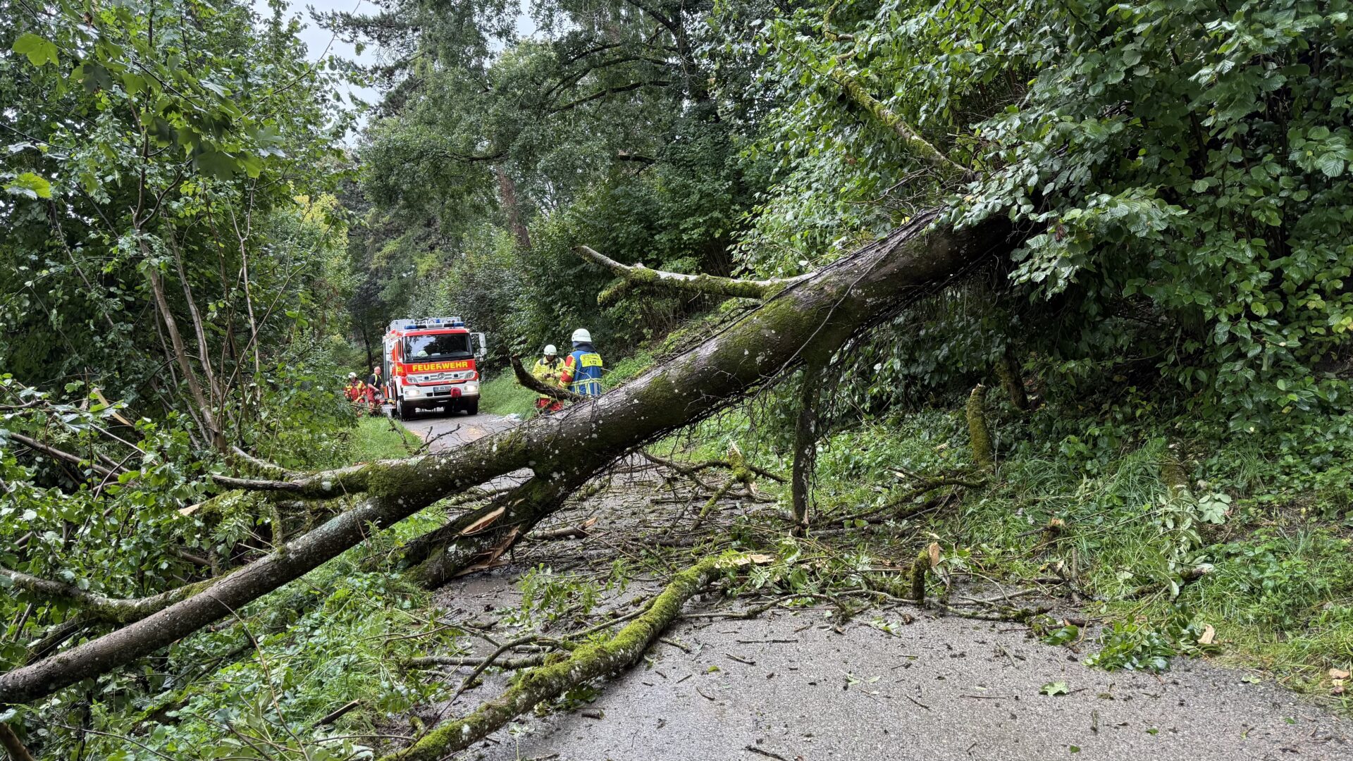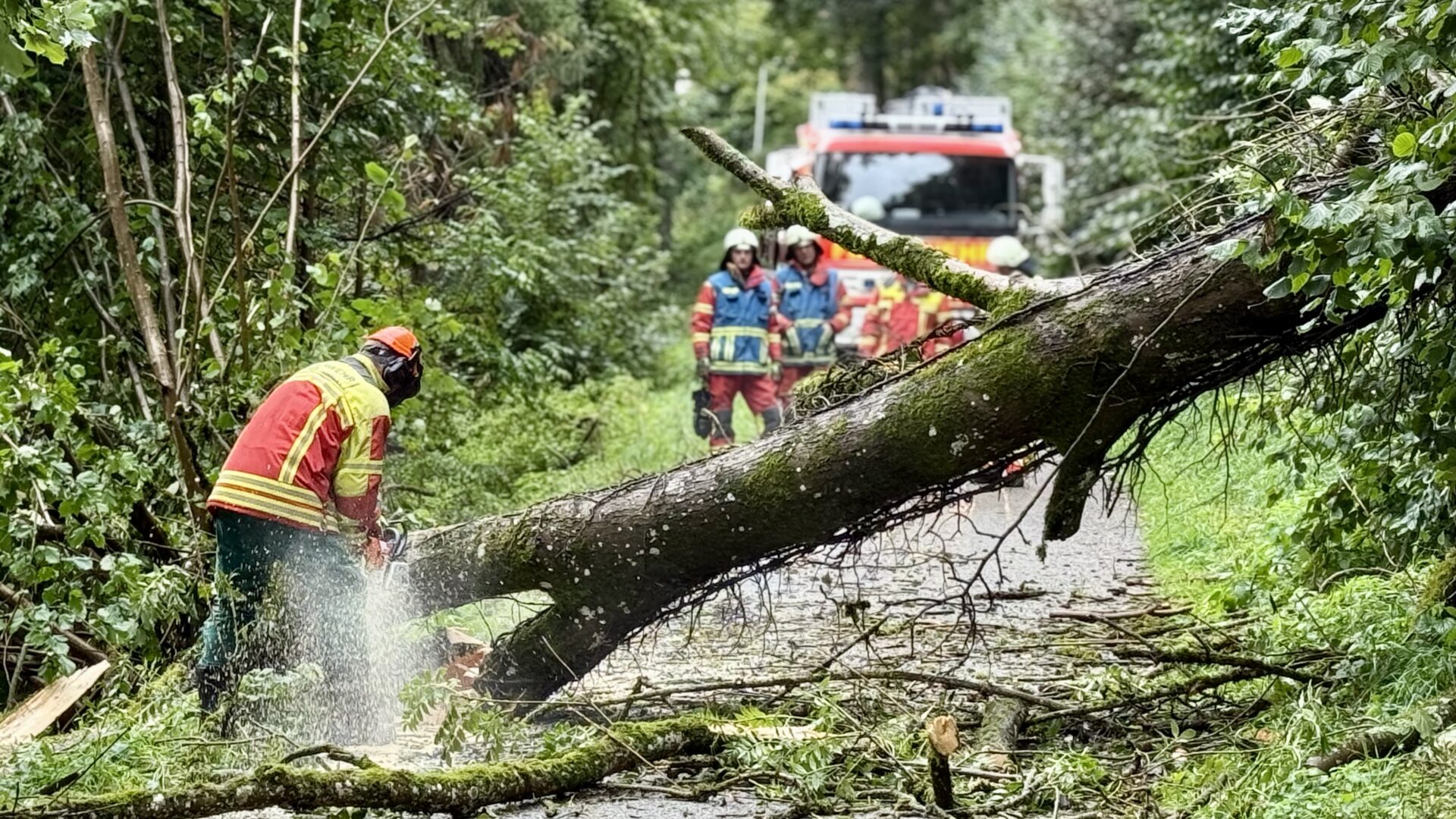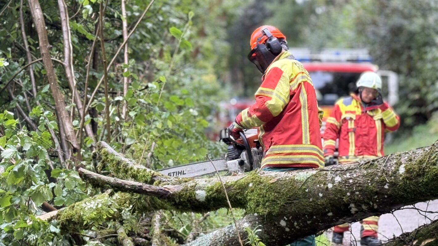 Die Buche hatten die Einsatzkräfte nicht komplett zerteilt, das kann ab kommender Woche etwa der örtliche Bauhof erledigen.