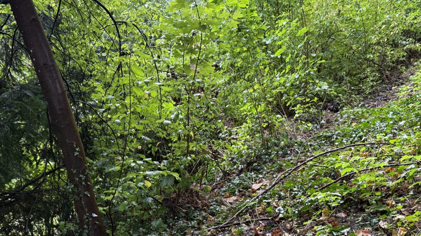 Der Baum war aus einem Hang abgebrochen, stürzte samt Wurzelwerk um. Ein neu gerichteter Weg befindet sich in der Nähe, an der Absturzstelle schien der Hang aber nicht verändert worden zu sein.