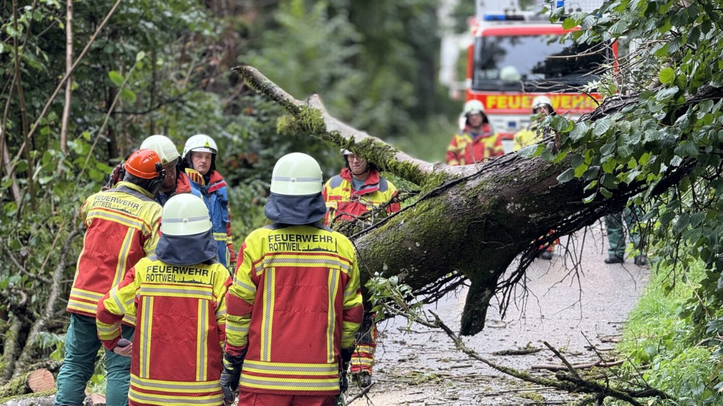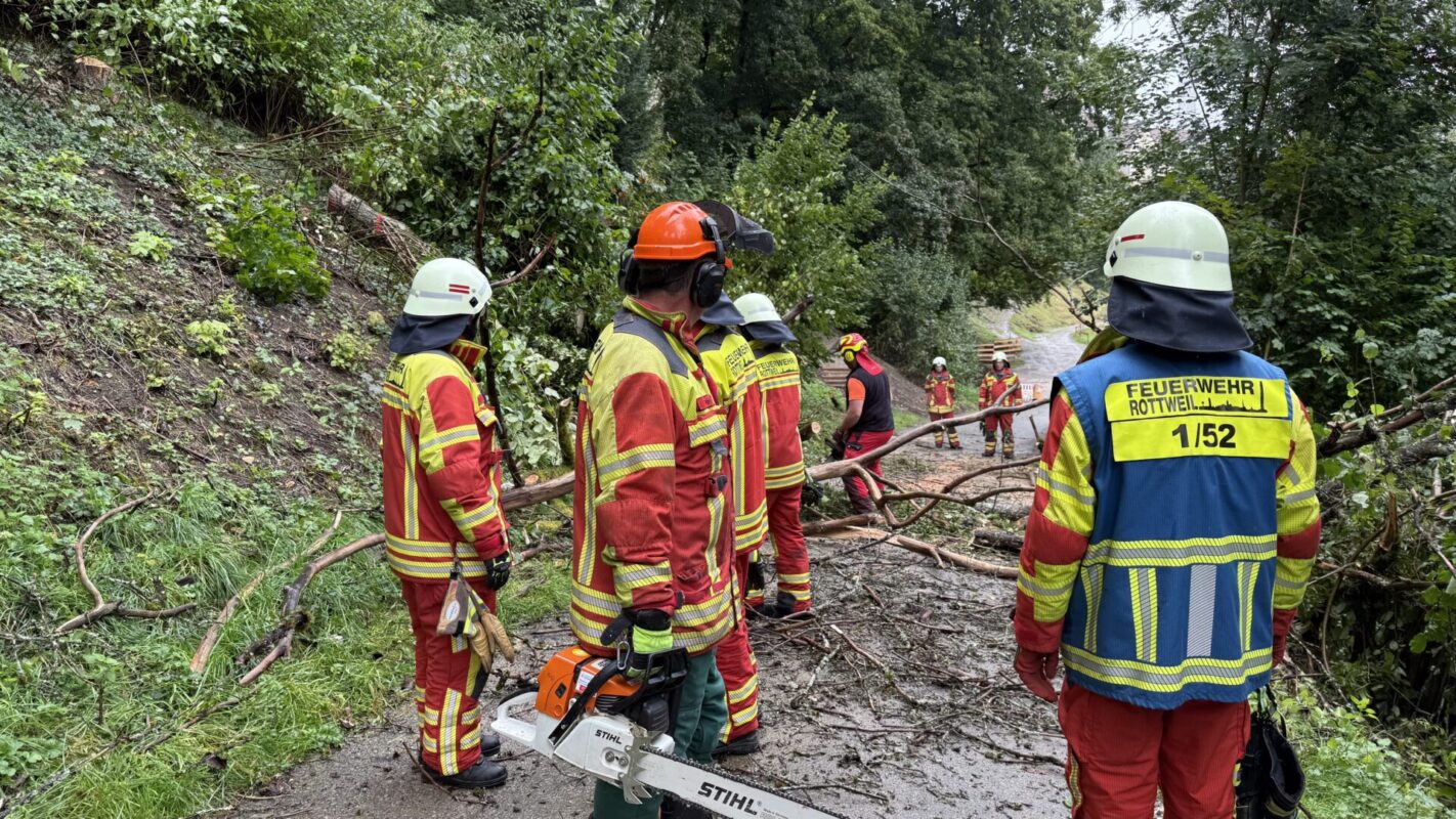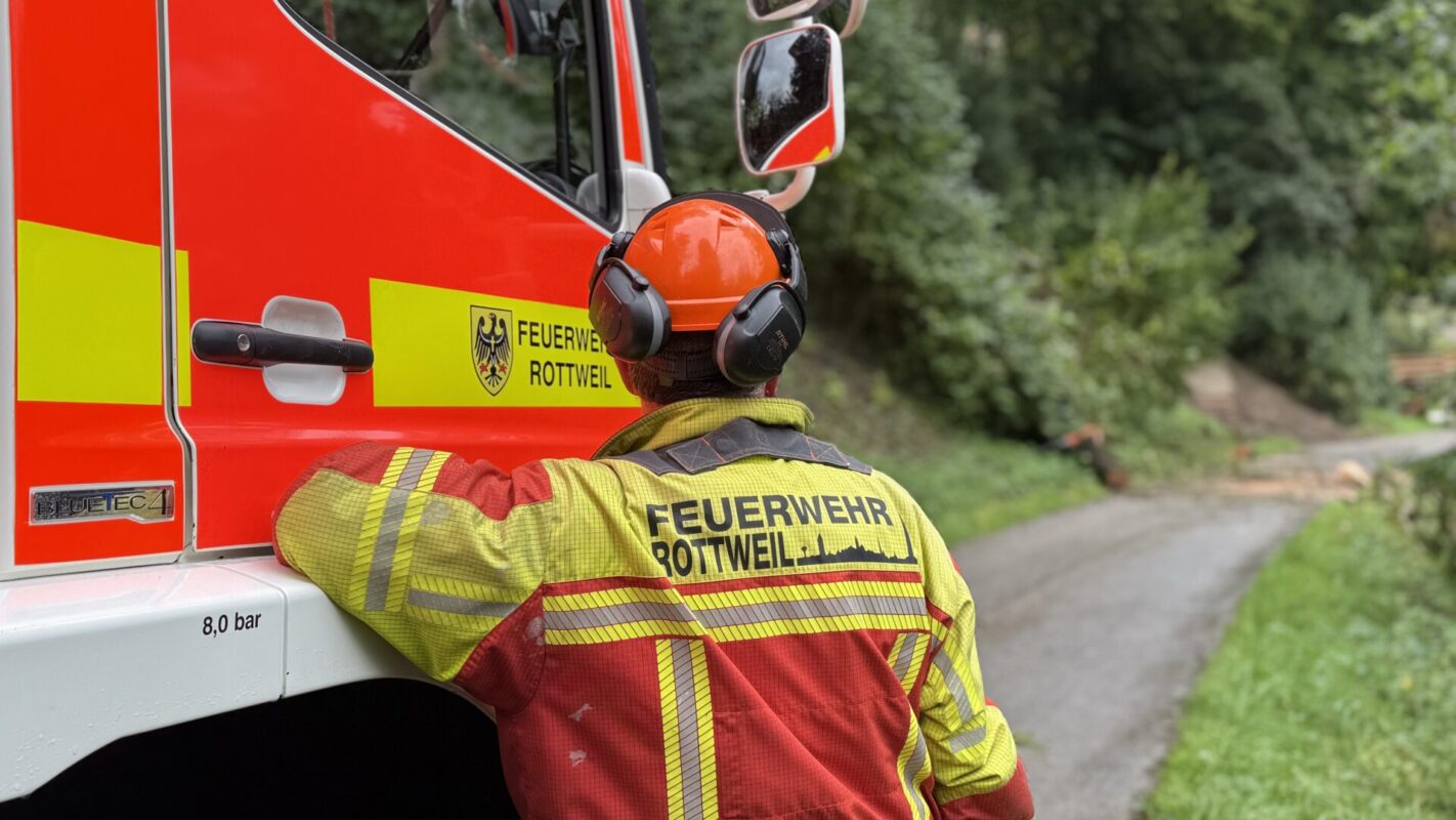 Erosion nach den Regenfällen zuletzt? Jedenfalls hat sich am frühen Sonntagmorgen ein Baum im Rottweiler Stadtgraben, im Gelände der Landesgartenschau 2028, gelöst. Die im Hang stehende, rund 30 Meter hohe Buche legte sich quer über eine Zufahrt, sie musste von der Feuerwehr zersägt und beseitigt werden. Ein Facharbeiter beseitigte auf Anforderung der Feuerwehr im gleichen Zuge einen zweiten Baum. Jetzt sei der Abschnitt sicher, hieß es.