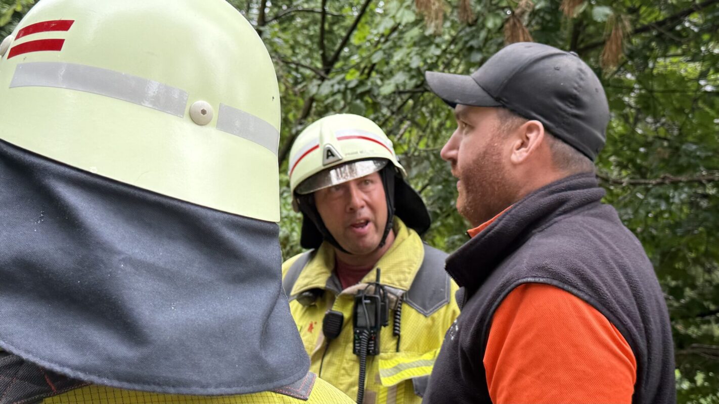 „Jetzt ist hier erst einmal Ruhe.“ Das sagte Müller, nachdem auch der zweite Baum gefällt war. „Sichern, sägen, aus dem Hang rausholen“, lautete Müllers Devise. „Dann kann da nichts passieren.“