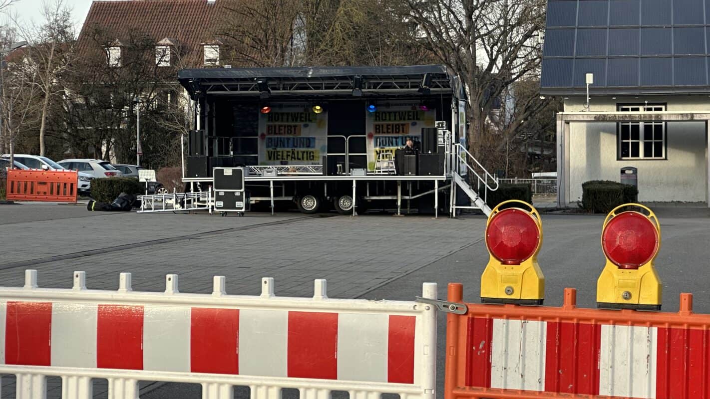 Sänze hat als Rahmenprogramm des Wahlkampfabends in der Stadthalle eine Demonstration des Kreisverbands RW-TUT auf dem Schotterparkplatz angekündigt (siehe unten). Auf jenem Schotterparkplatz, der aktuell von Pendlern genutzt wird, weil der Parkpklatz Zentrum / Groß’sche Wiese gesperrt ist. Es steht zu erwarten, dass die Polizei den Platz am kommenden Dienstag wenigstens teilweise abriegeln wird. Außerdem veranstaltete das Bündnis „Rottweil bleibt bunt“ seine Gegendemo gegen den Landesparteitag der AfD ebenfalls auf jenem Platz. Dieser steht nicht mehr zur Verfügung, weshalb die AfD-Gegner vor dem Aquasol auftreten werden. Mit einem Puffer aus Beamtinnen und Beamten des Präsidiums Einsatz zwischen ihnen und den AfD-Anhängern.