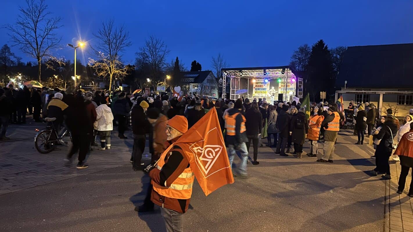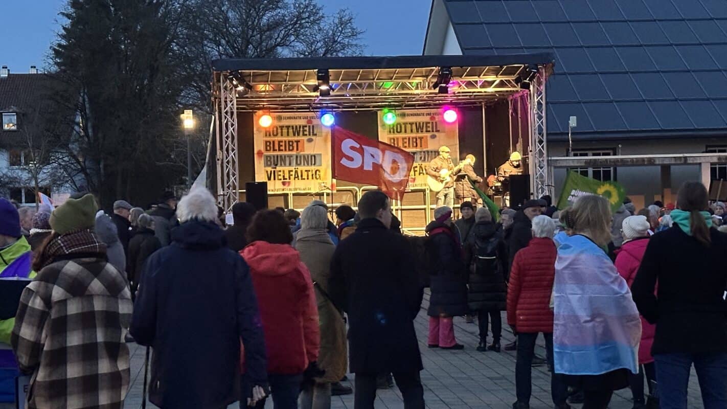 Eigentlich sollte bereits Mitte November ein „Konservativer Bürgerdialog Rottweil“ der AfD stattfinden – im kleinen Rahmen in einem Sportheim in der Rottweiler Altstadt. Ein Protest des Bündnisses für Demokratie und Vielfalt, „Rottweil bleibt bunt“, verhinderte das allerdings. Ergebnis: Am Dienstag bot die AfD die Veranstaltung erneut an – in ungleich größerem Rahmen. In der Stadthalle, aber entgegen der Ankündigung nicht mit der Parteiikone Alice Weidel. Wieder wurde Protest laut. Dieser Beitrag wurde regelmäßig aktualisiert.