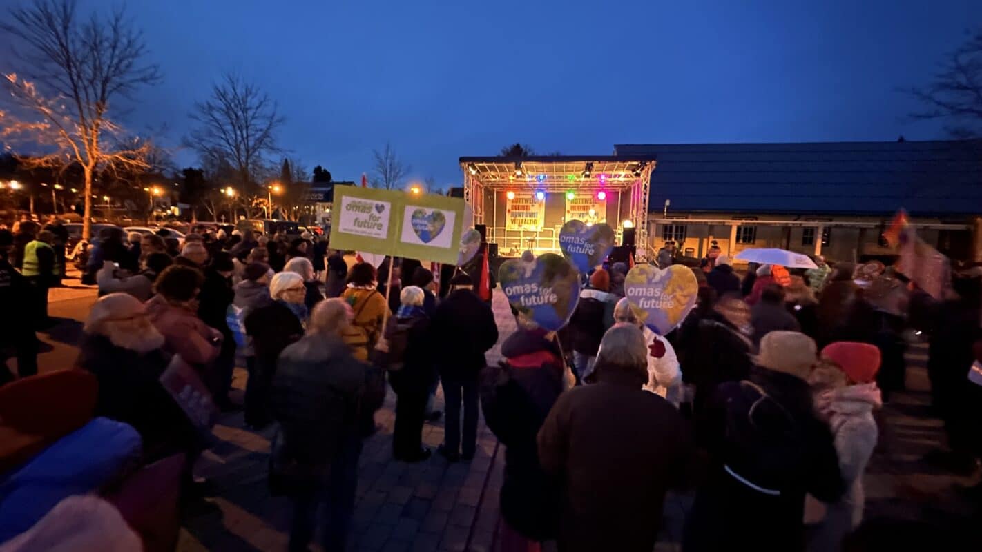 18.20 Uhr: „Omas for Future“ sprechen draußen, inzwischen hören um die 500 Menschen zu, sagen die Verantwortlichen.