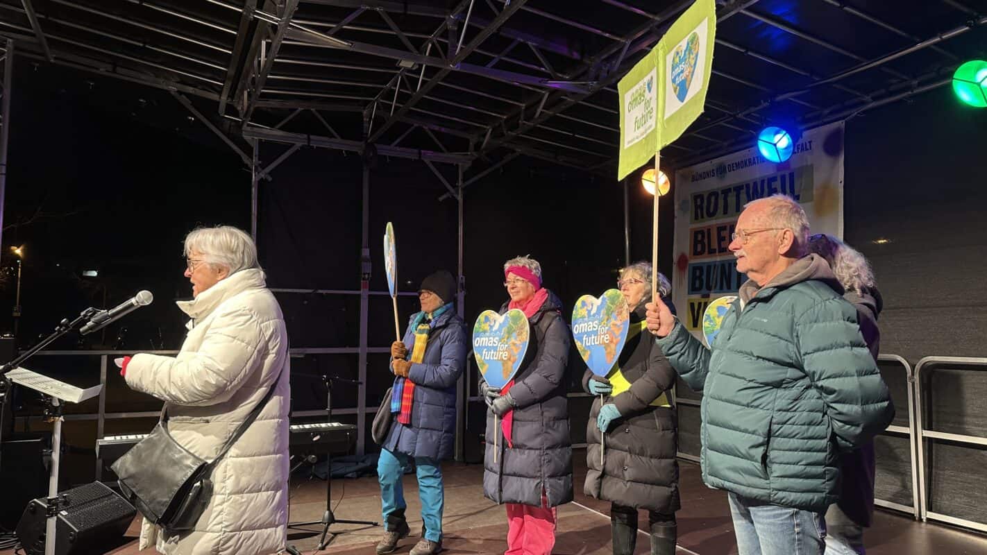 Vertreter von Parteien wie der SPD, Volt und den Grünen sind ebenso da wie Gewerkschaftsleute. Auch die „Omas for Future“ und „Fridays for Future“.