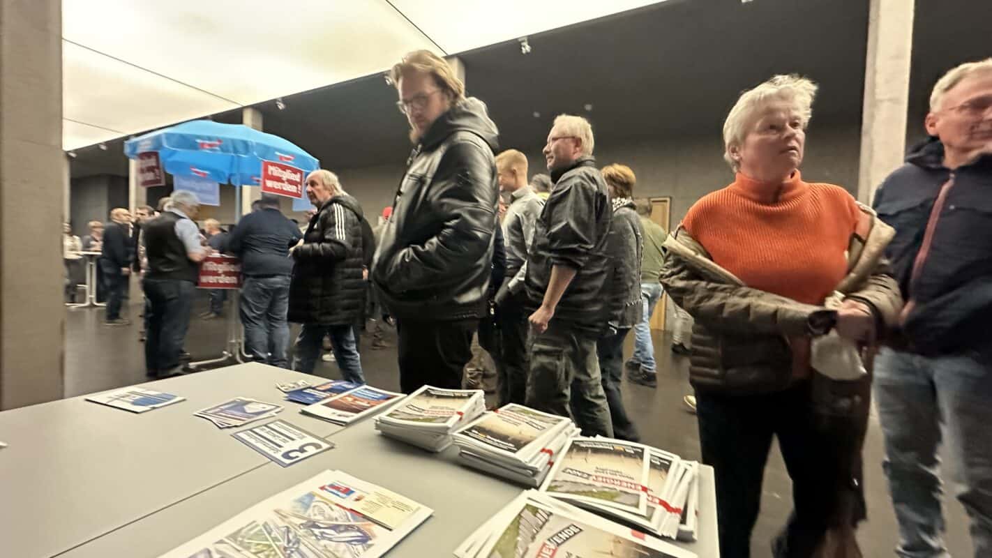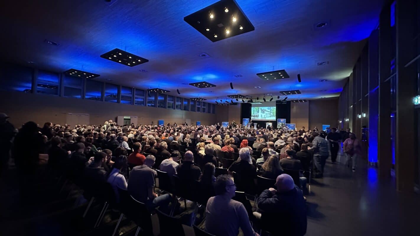 Mehr als 800 Menschen füllen die Rottweiler Stadthalle rund 20 Minuten vor Veranstaltungsbeginn. Erste stehen am Rand. Ob sie auf Stargast Weidel hoffen? Diese kommt, „wie es aussieht, nicht“, bestätigt auch der Veranstalter jetzt der NRWZ.