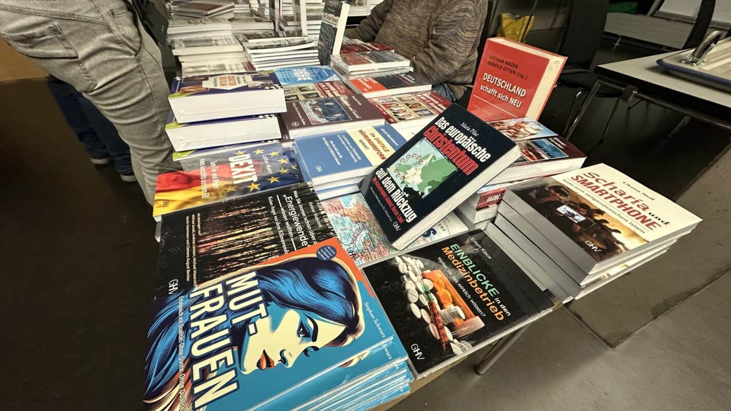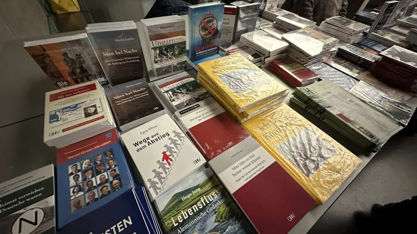 Bücherstand der AfD im Foyer.