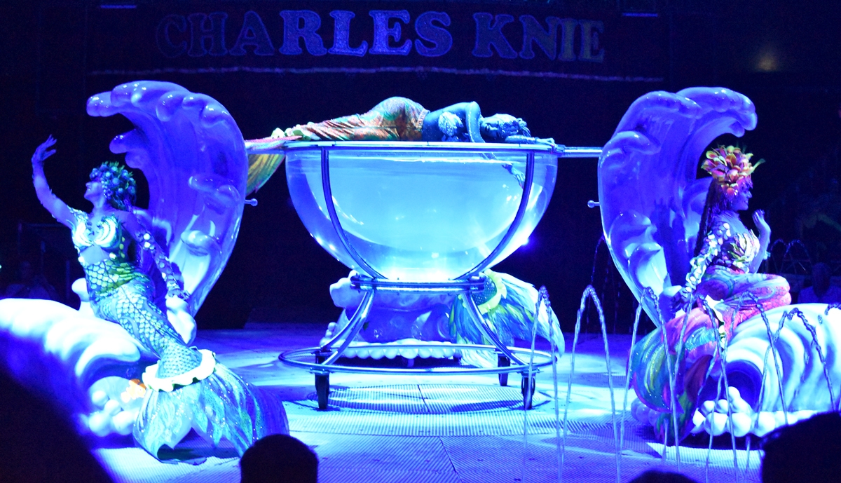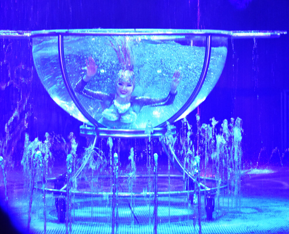 Viel Wasser war im Spiel – wie auch der Name der Show „100.000 Liter Emotionen“ schon sagt. Okay: Es sind zwar nicht 100.000 Liter oder 100 Kubikmeter Wasser in den Tanks unter der Manege. Aber die 30.000 Liter laufen drei Mal durch die Rohre, wie Zirkusdirektor Sascha Melnjak verriet.