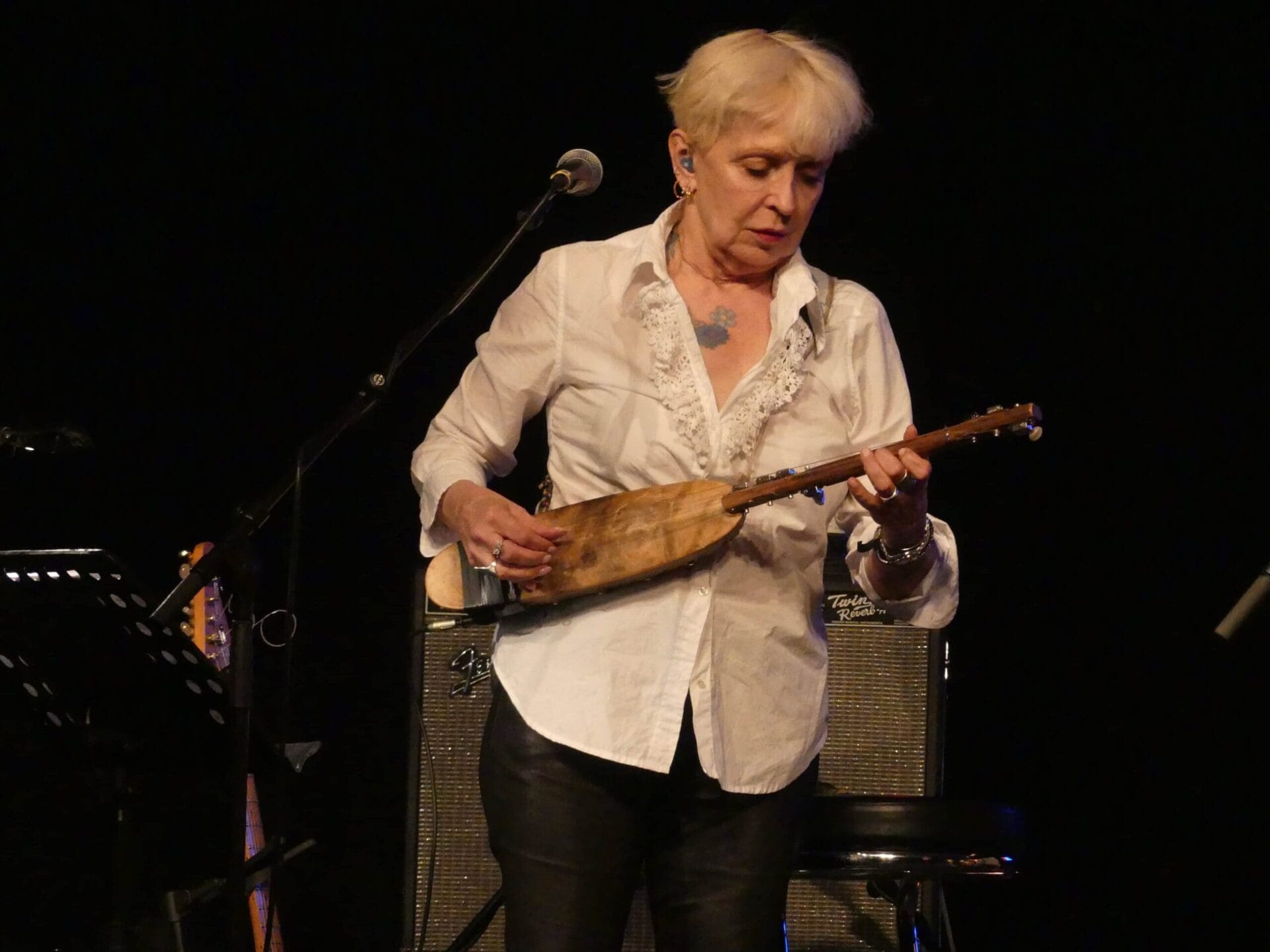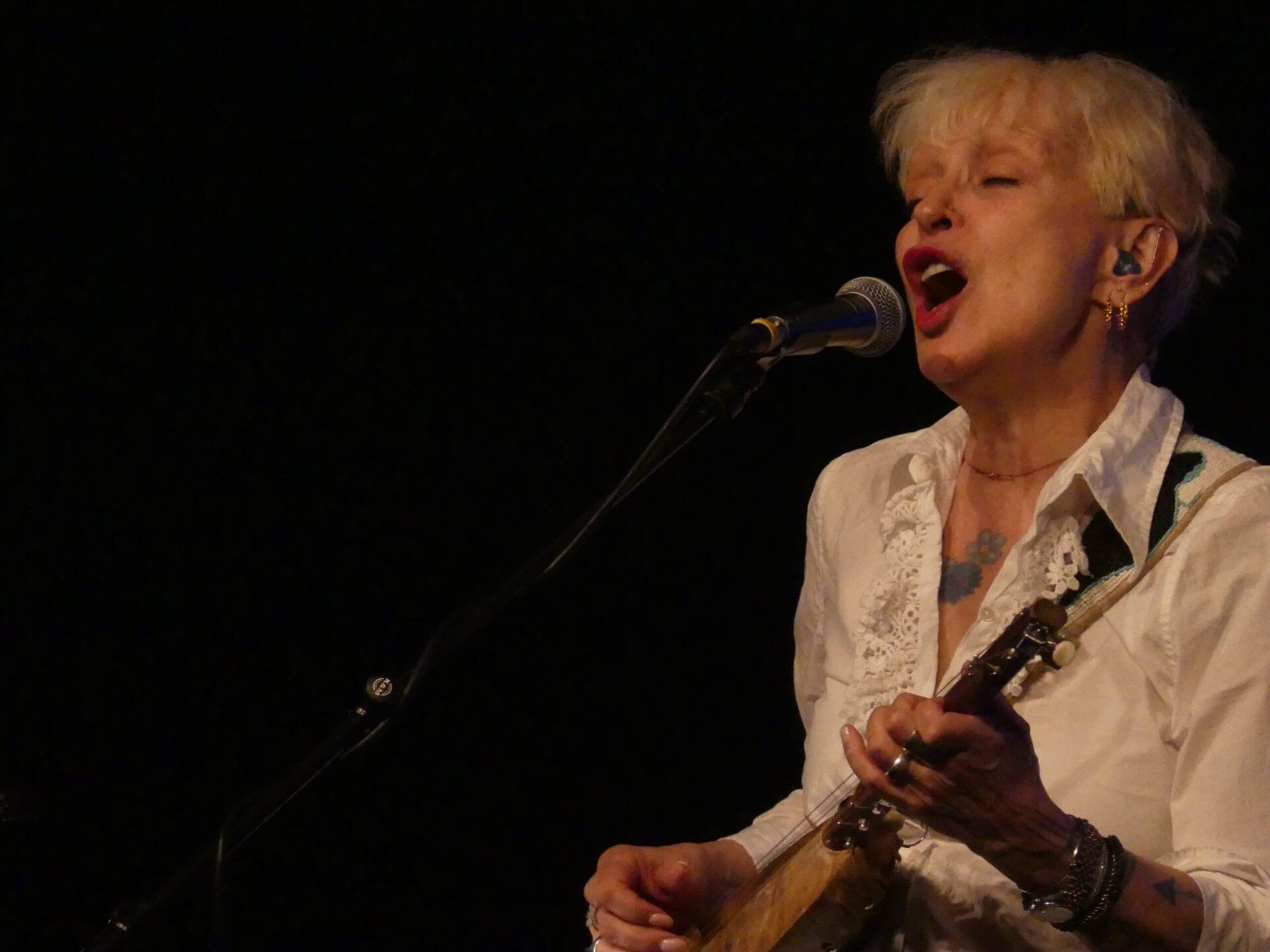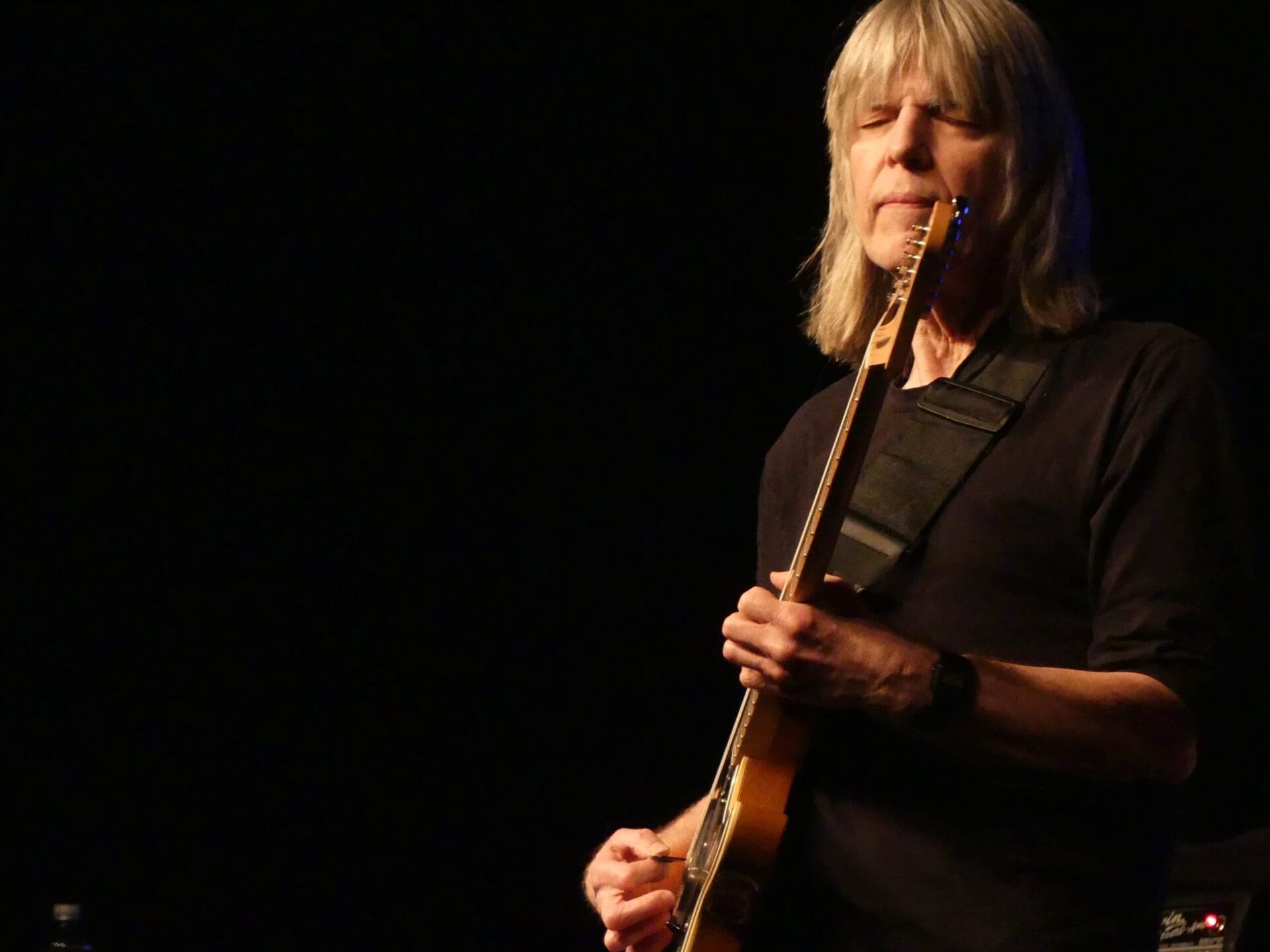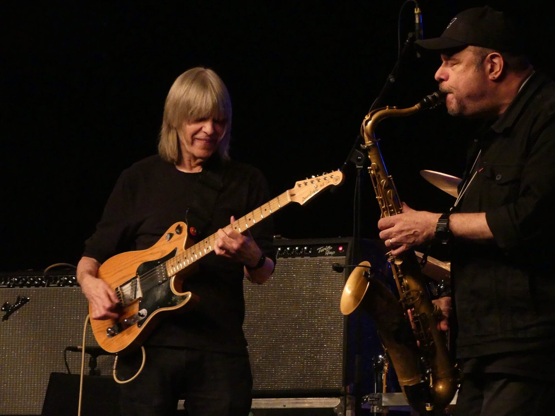 Ihr Ehemann, im langen Set ohne Pause zweifelsohne der Mittelpunkt bis hin zum bluesigen Ende, zog von Jazz bis Hendrix wie gewohnt alle Register, bestens verstärkt von der spielfreudigen Truppe aus Bob Franceschini (Sax), Hadrien Feraud (Bass) und Dennis Chambers (drums). Nach leisem Start mit „Like a thief“ folgten krachende Donnerschläge, wild-eruptive Soli, dann wieder kammermusikalische Einschnitte: Gekonnt serviert das Quintett rhythmische und dynamische Wechselbäder, die typischen Doppelläufe aus Gitarre und Bass fanden sich ebenso wieder wie der schon 2010 vergnüglich prasselnde Soloreigen.