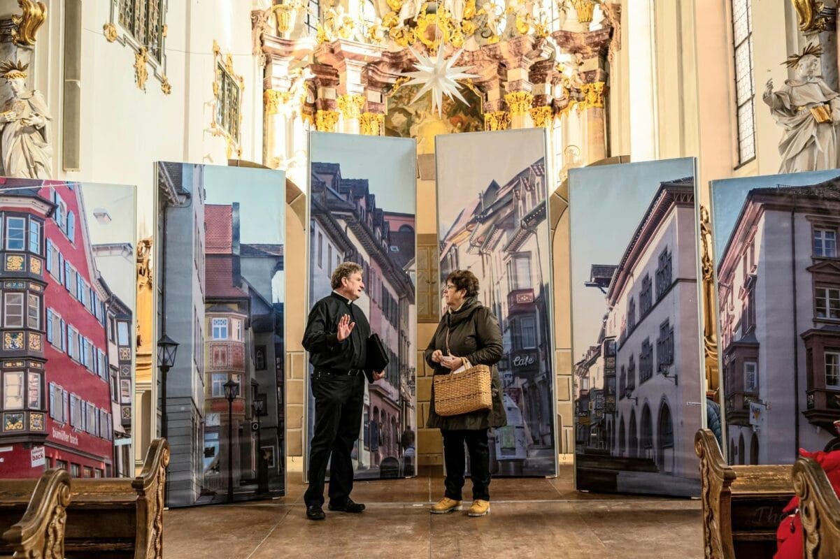 „Eine tolle Truppe ist das“, schwärmt im Gespräch mit der NRWZ Stefanie Siegmeier, die zusammen mit Sabina Kratt und Stephan Drobny das 2018 vom Krimi-Kultautor Felix Huby erdachte Stück aktualisiert hat. „Wir sind bei den Proben super zusammengewachsen“, erzählt sie. Und irgendwie hätten gerade der erhebende Raum der Predigerkirche und die Madonna, die seit einigen Wochen gleichsam Aufsicht über die Vorbereitungen führt, viel dazu beigetragen. „Da entsteht eine ganz eigene Energie“, sagt Siegmeier – und klingt fast verwundert.