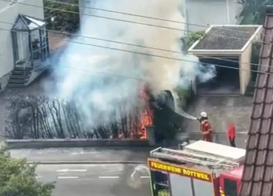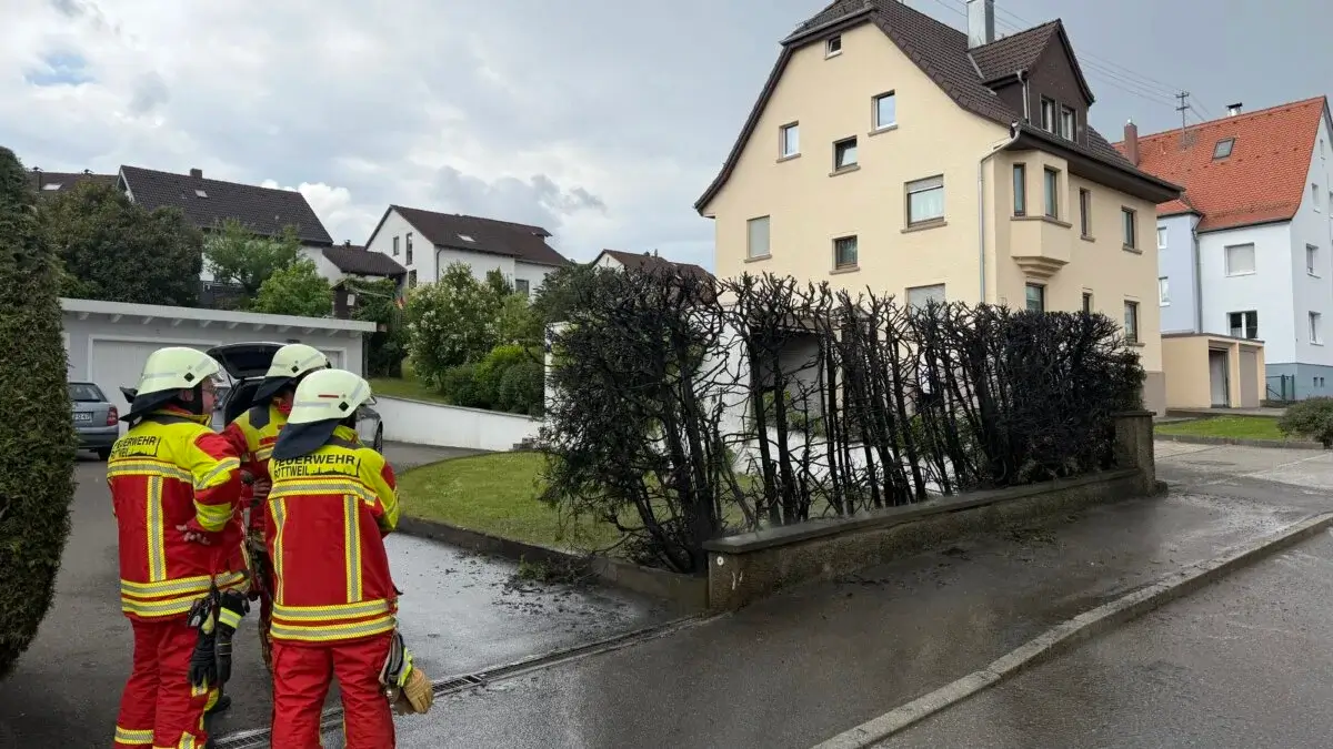 Glücklicherweise liegt das Gerätehaus der Rottweiler Feuerwehr nur etwa 50 Meter von der Hecke entfernt. Die Einsatzkräfte um Stadtbrandmeister Frank Müller waren mit zwei Löschfahrzeugen und teils zu Fuß rasch vor Ort. Die Hecke war allerdings nicht mehr zu retten.