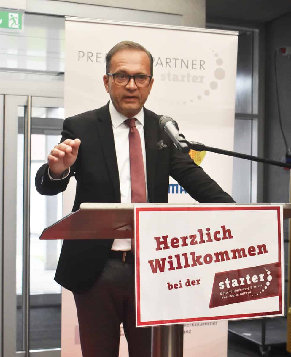 „Die ‚starter‘-Messe wird volljährig“, sagte Oberbürgermeister Dr. Christian Ruf bei der Eröffnung. „18 Jahre ‚starter‘ – eine beeindruckende Zahl. Und eine beeindruckende Entwicklung, die die Ausbildungs- und Berufsmesse in dieser Zeit durchlaufen hat. Sie strahlt weit über die Region hinaus und ist sowohl für Berufseinsteiger als auch für die Unternehmen zu einem wichtigen Dreh- und Angelpunkt geworden“, ergänzte er, mahnte aber auch, dass dies lange kein Grund sei, sich gelassen zurückzulehnen, „sondern es gilt weiterhin, mit neuen Ideen durchzustarten und sich den Gegebenheiten der Zeit anzupassen. Immer wieder gibt es neue Herausforderungen zu meistern“, betonte Ruf und dankte der Wirtschaftsförderung, allen voran Messeorganisatorin Bettina Weigl, die mit Unterstützung der Agentur Hugger-Gestaltung mit Frank Hugger und Schüler Messebau, dem Team von Martin Schüler, „auch in diesem Jahr wieder eine beeindruckende Messe auf die Beine gestellt hat“.