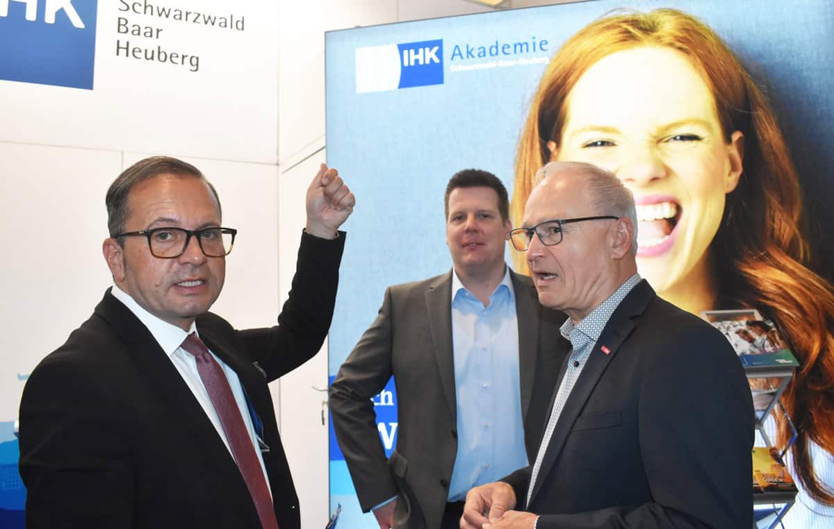 Beim Messerundgang am Freitagmorgen informierten sich Oberbürgermeister Dr. Christian Ruf, Wirtschaftsförderer Alexander Stengelin, IHK- Hauptgeschäftsführer Thomas Albiez, Miriam Kammerer, die stellvertretende Geschäftsbereichsleiterin Bildung bei der IHK, Werner Rottler, Präsident der Handwerkskammer Konstanz, Hermann Kopp, erster Landesbeamter des Landkreises Rottweil, sowie der FDP-Landtagsabgeordnete Daniel Karrais über die Vielfalt des Messeangebots. Sie tauschten sich an den Ständen mit Ausbildungsleitern und Azubis aus und freuten sich über die große Resonanz.