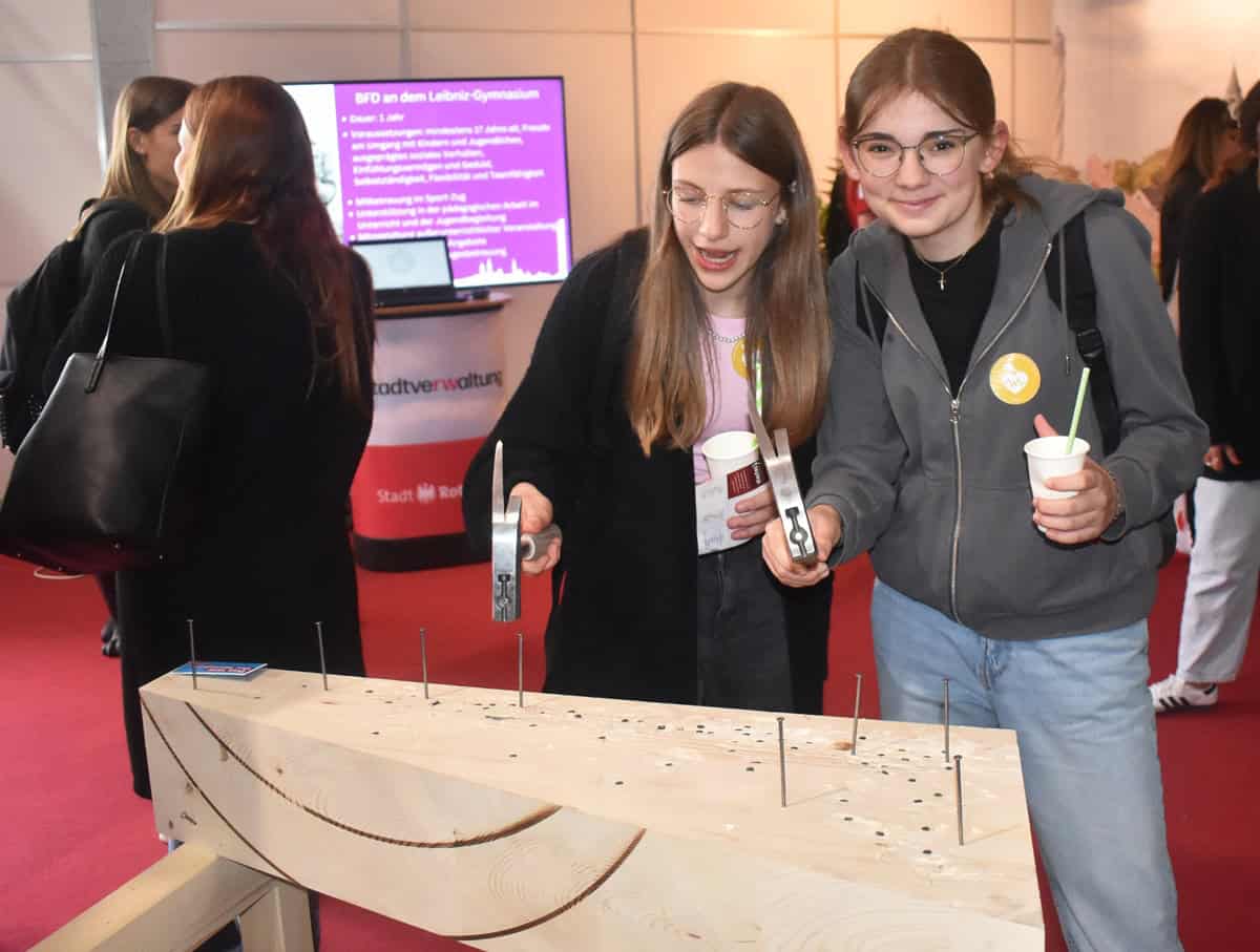 Die Messe verzeichnet in diesem Jahr einen Ausstellerrekord. Es gab so viele Anmeldungen wie noch nie. „Das freut uns und zeigt, wie wichtig die Messe nicht nur für die Schüler ist, die sich in der Vielfalt des Berufsangebots erst einmal orientieren müssen, sondern gerade auch für unsere Betriebe und Unternehmen, die sich hier präsentieren und zeigen können, was die Region alles zu bieten hat“, verdeutlichte der Oberbürgermeister. 95 Aussteller aus den Bereichen Industrie, Dienstleistung, Handel, Pflege, Soziales und Handwerk sowie Behörden und Schulen präsentieren sich zwei Tage lang an 100 Messeständen. Es gibt viel Informationen und auch eine ganze Menge zum Entdecken und Ausprobieren.