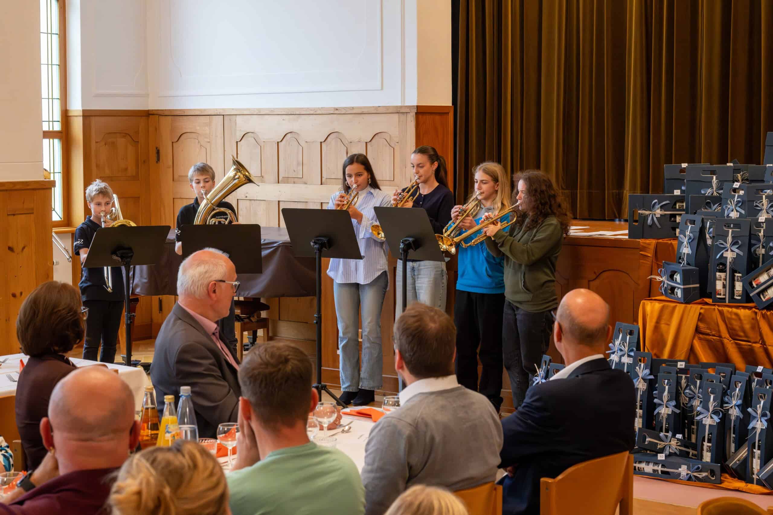 Wolfgang Flach dankte den Mitarbeiterinnen und Mitarbeitern im Namen der Mitarbeitendenvertretung für ihren Einsatz und ihre Treue zum Haus. Musikalisch umrahmt wurde die Ehrung von einem Ensemble der Jugendkapelle der Stadt Rottweil unter Leitung von Stadtmusikdirektor Johannes Nikol.
