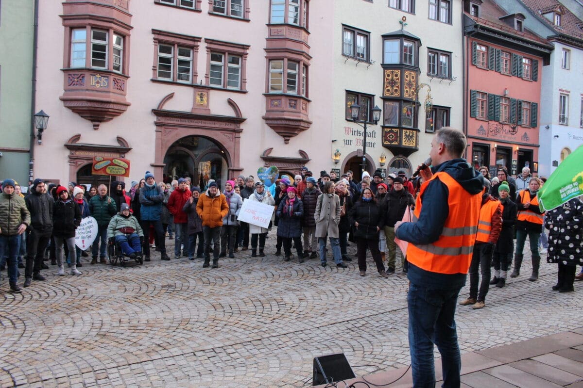 Der Bundestagskandidat der Grünen im Wahlkreis Rottweil-Tuttlingen, Dr. Andreas Ragoschke-Schumm, sprach sich für mehr Zusammenhalt aus: „Wir können die Demokratie nicht alleine verteidigen. Es wäre schön, wenn die CDU auch dabei wäre.“ Man wolle die stark beschädigte Brandmauer nun reparieren, denn „die AfD darf niemals in die Regierung kommen!“ Man müsse jetzt handeln, „Demokratie ist kein Naturgesetz.“