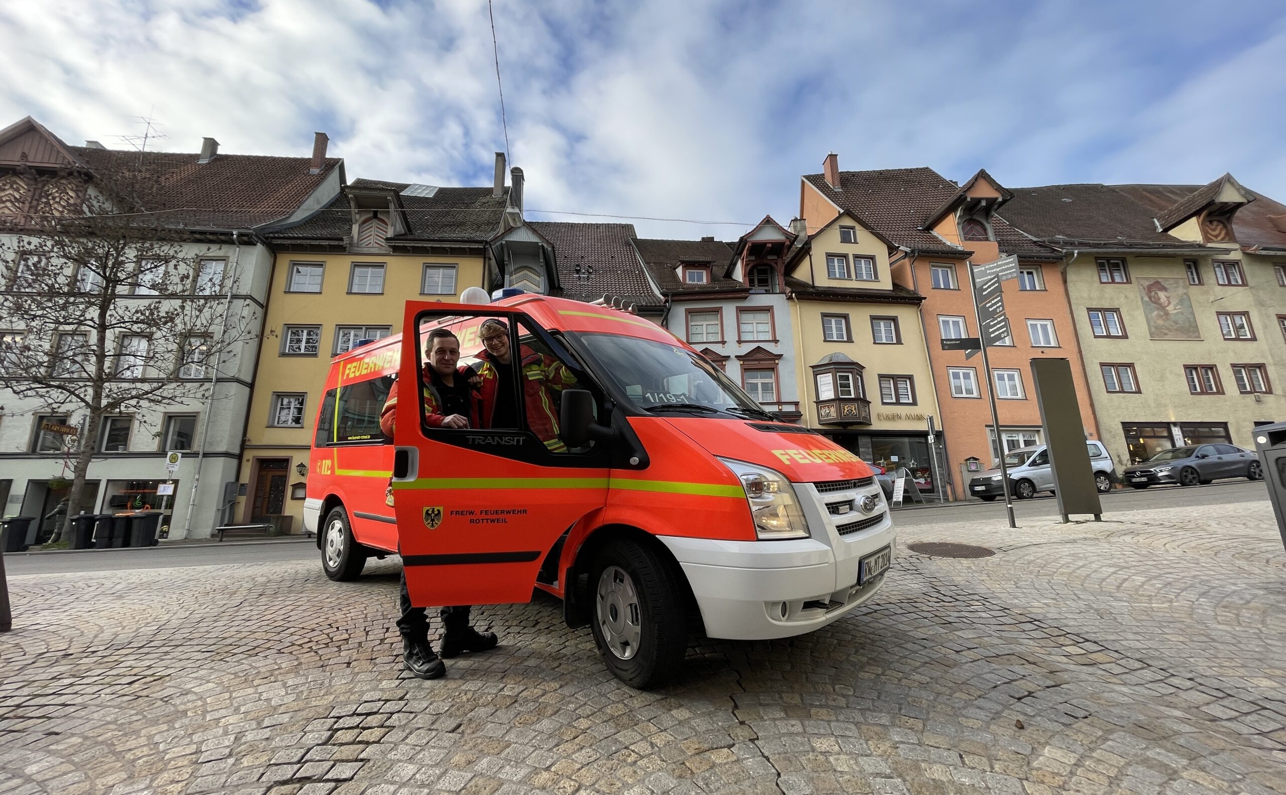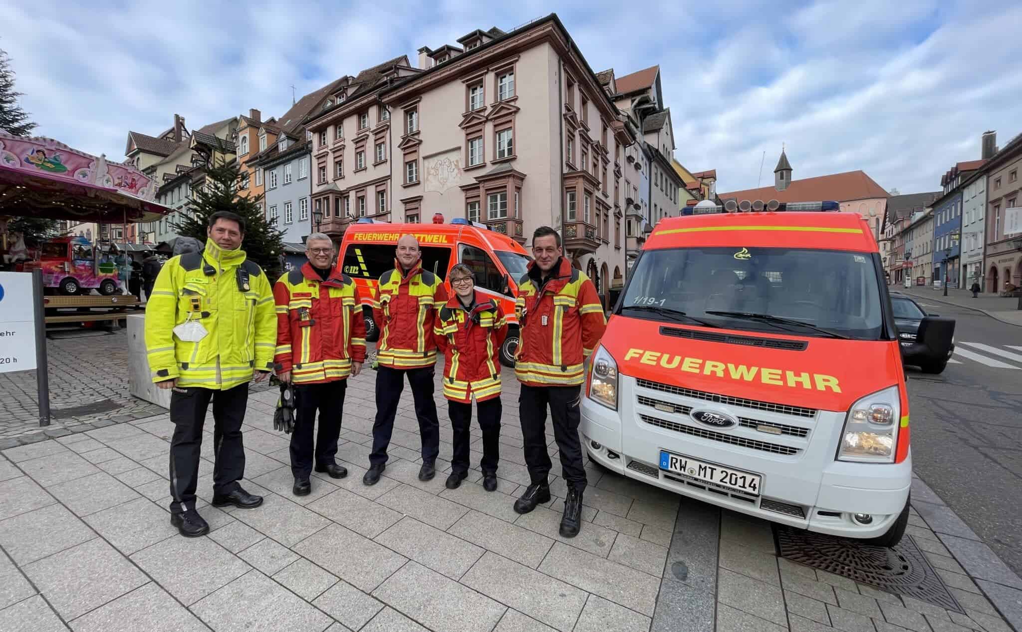 ROTTWEIL. Sirenenton in der Innenstadt: Um 11 Uhr hat sich die Feuerwehr Rottweil am Warntag 2022 unter anderem mit zwei Fahrzeugen in der historischen Innenstadt beteiligt. Während des Einsatzes von mobilen Sirenen trafen auf den Smartphones der Beteiligten auch die Warnungen der Apps und des Providers ein. Jedenfalls bei fast allen.