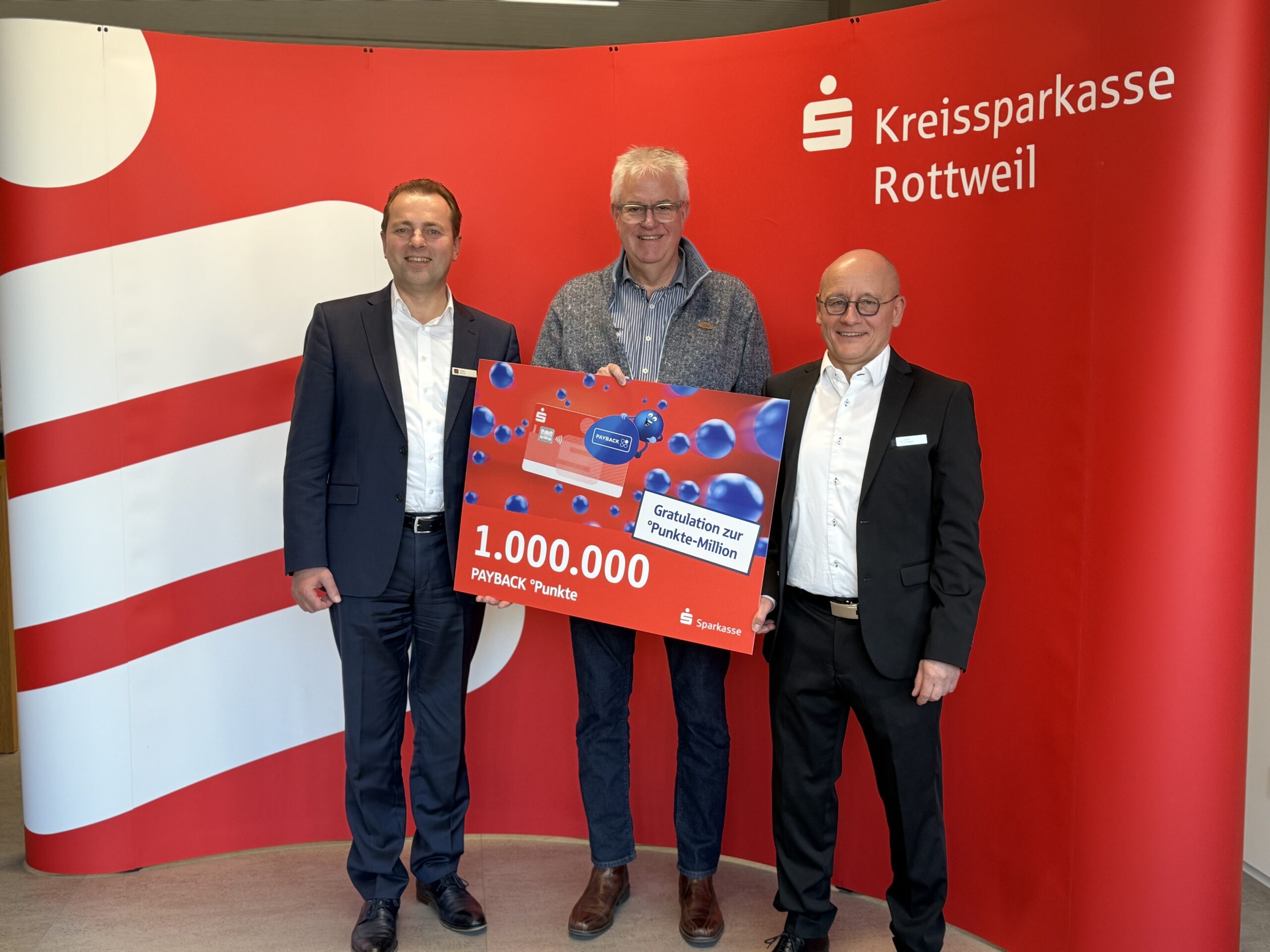 Grund zum Jubeln bei der Kreissparkasse Rottweil: Karsten Hansmann ist Punkte-Millionär. Damit zählt er zu den glücklichen Gewinnern eines bundesweiten…