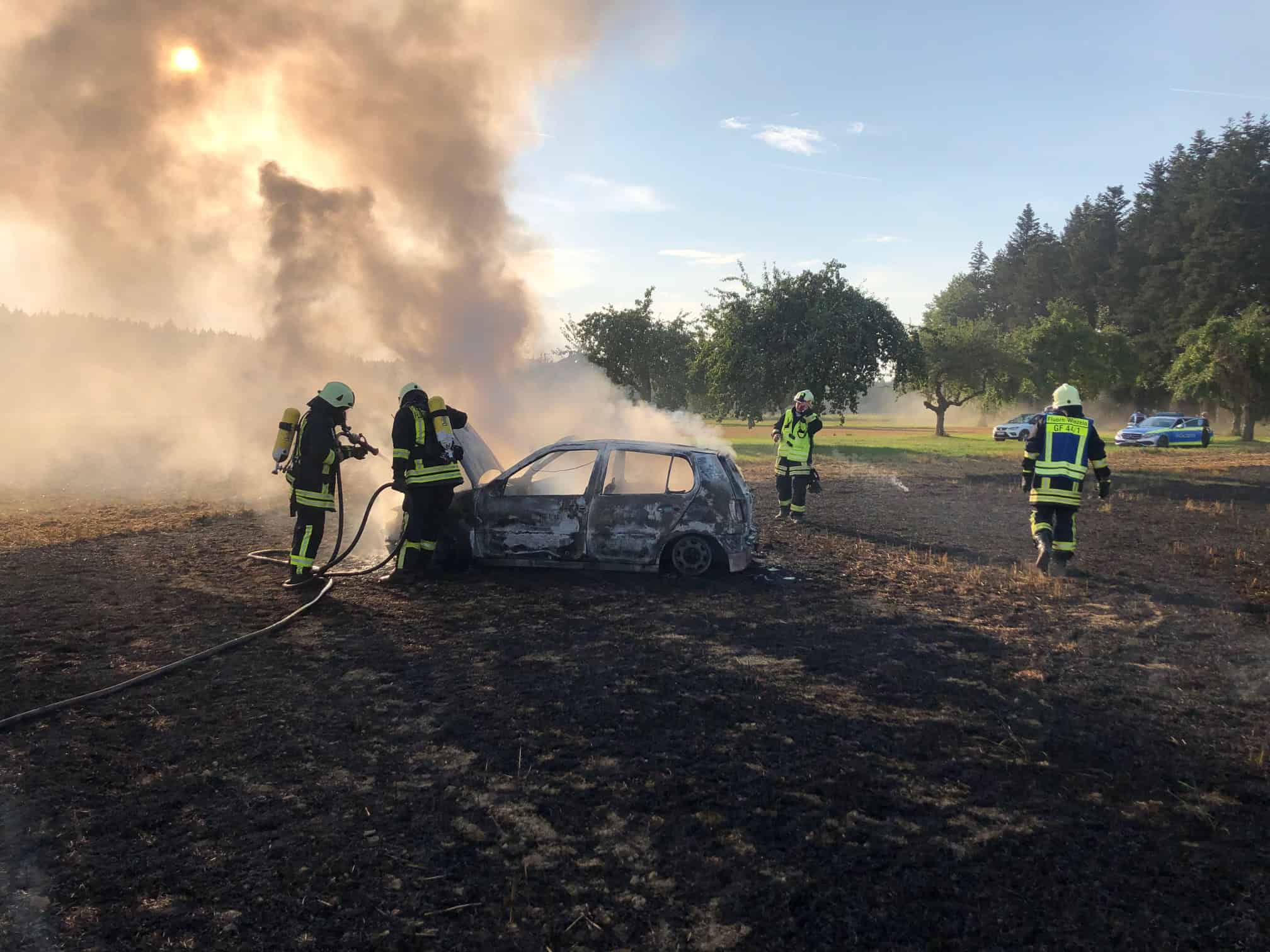 Im Gewann Eisenschorn am Ortsende von Winzeln Richtung Rötenberg brannte am Montagabend ein Auto auf einem Stoppelfeld. "Zwei Landwirte pflügten…