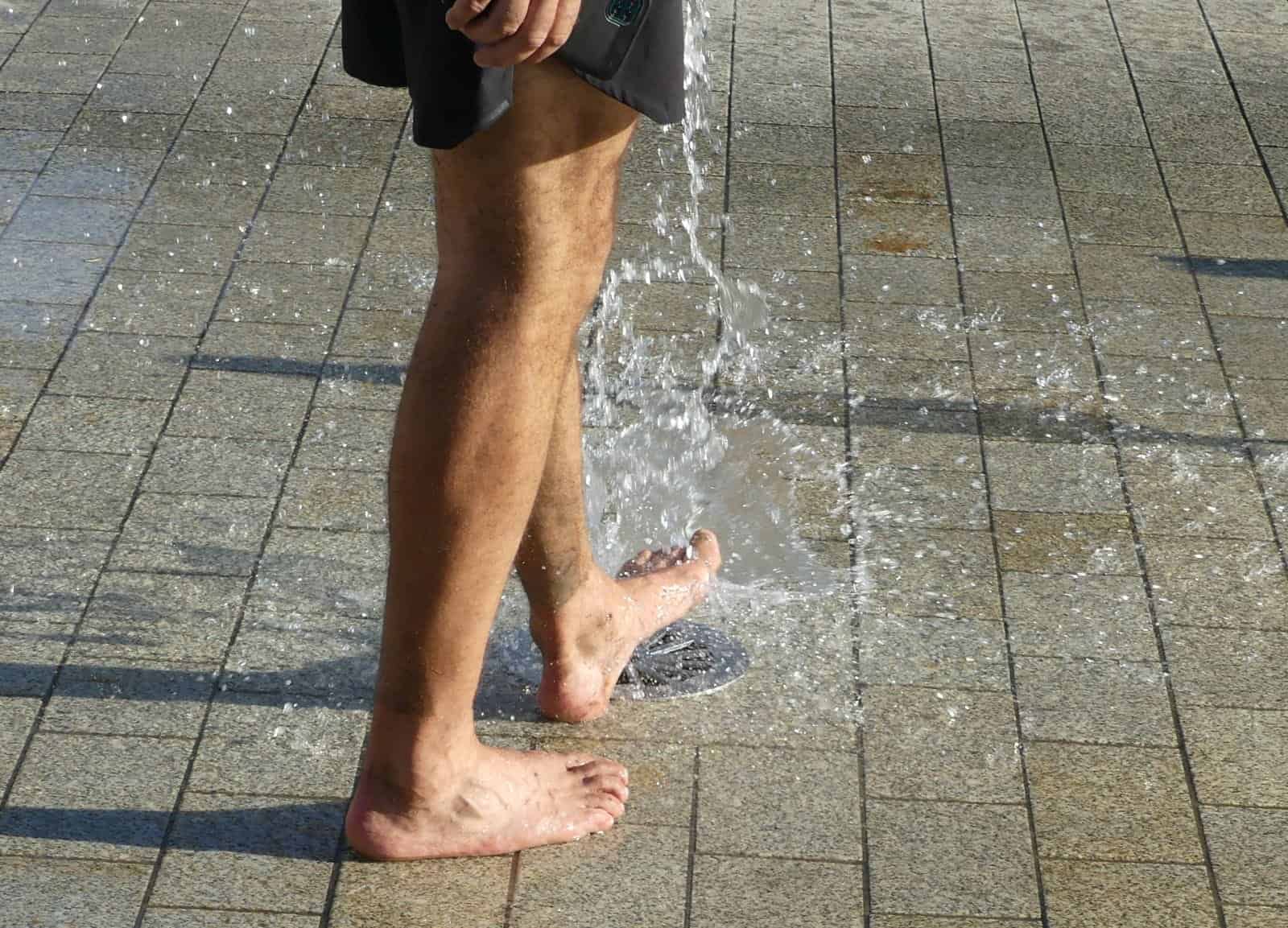 Auf dem hinteren Rathausplatz humpelt einer der Marathonwanderer Richtung Fontänenfeld und kühlt seine Füße. Im Zielbereich steht sein sichtlich zufriedener Organisator Fuß: „Es ist cool zu sehen, wie stolz sie sind, dass sie es geschafft haben.“