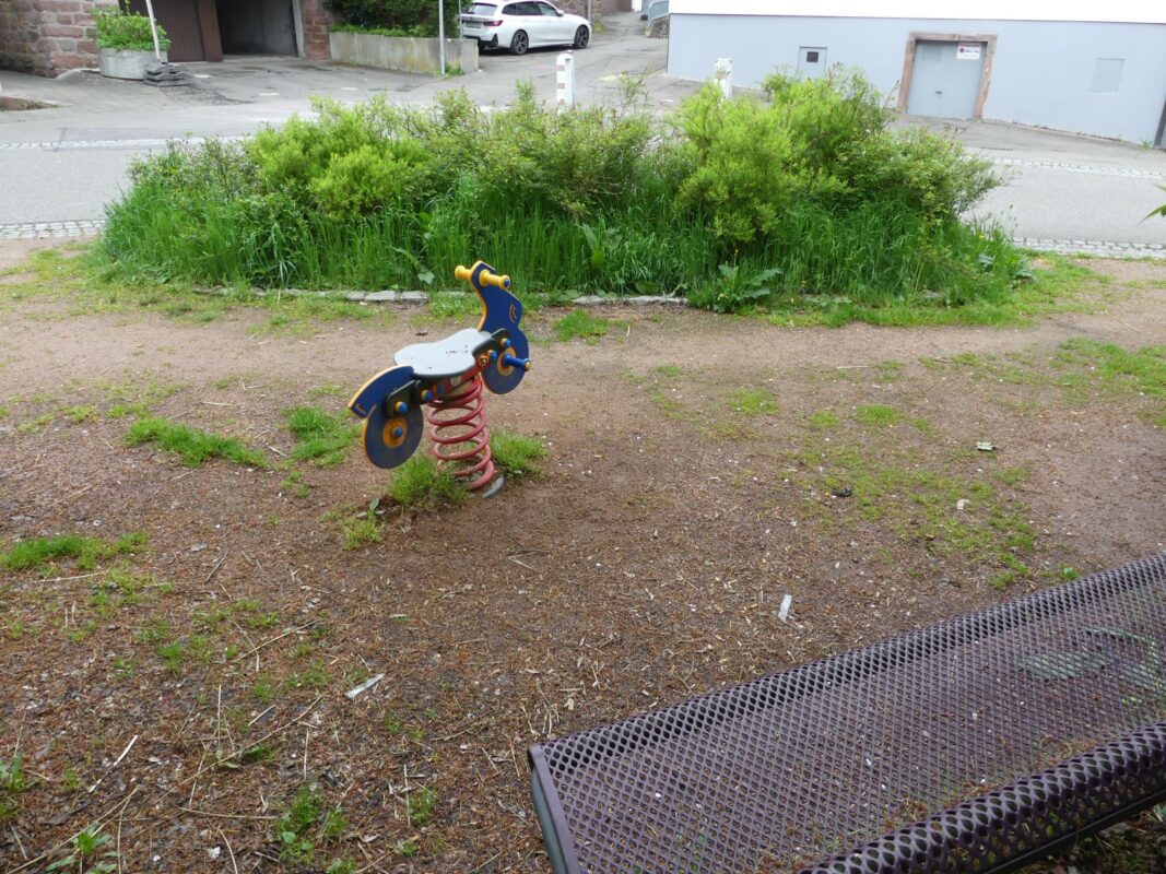 Vorne am Eck Richtung Hauptstraße soll der Fleck mit dem Trafohaus und dem Schaukelpferd aufgewertet werden.