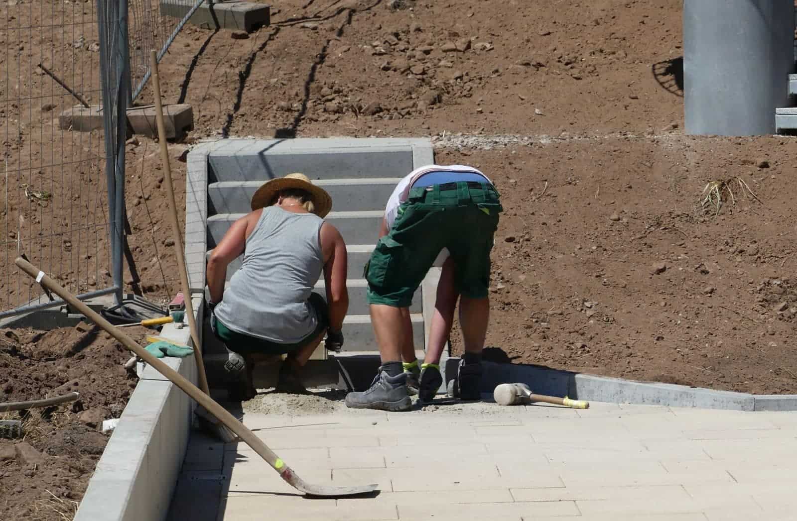 Während die Eröffnungsgäste schon ins Bad strömten, schufteten im Hintergrund noch die Landschaftsgärtner, richteten Treppenaufgänge oder planierten mit dem Bagger Freiflächen.
