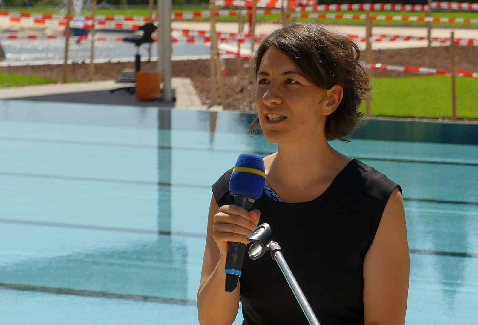Eisenlohr erinnerte daran, dass das 1974 erstmals eröffnete Freibad „noch vor meiner Amtszeit Alterserscheinungen“ aufgewiesen habe. Sie berichtete von den 1,5 Millionen Euro Zuschuss vom Bund und den 1,2 Millionen Euro vom Land. Unerwähnt blieb, dass diese ganz seltene Doppelförderung ihr Amtsvorgänger Thomas Herzog und sein Team in schwierigen Verhandlungen mit den Behörden erreichen hatten.