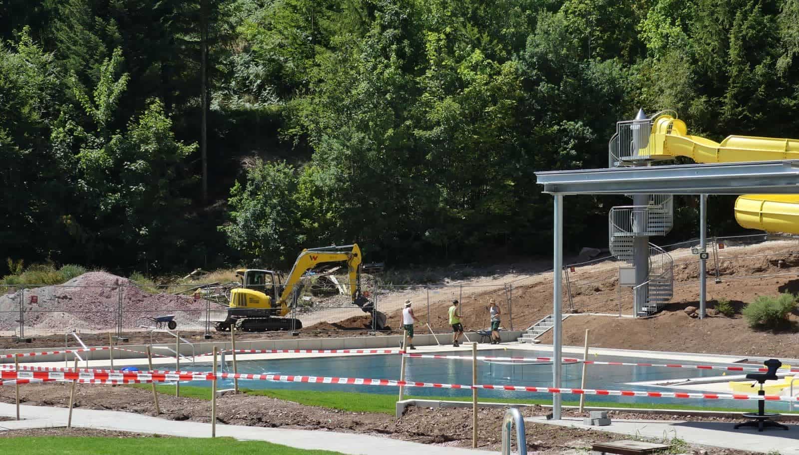 Die Bauarbeiten seien durch Corona und den Ukrainekrieg noch erschwert worden. Aber „Ende gut alles gut.“ Nun habe man drei Becken mit drei Rutschen. Es fehlten zwar noch die Liegewiesen, der Panoramaweg und das Boule-Feld. „Aber es bietet alles, was man für einen Kurzurlaub braucht.“