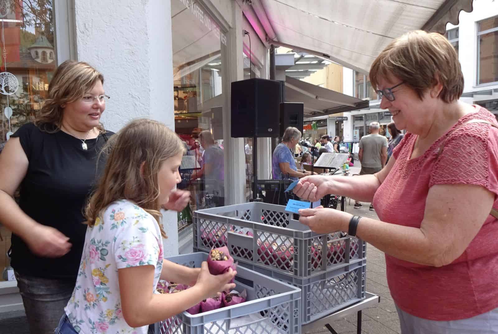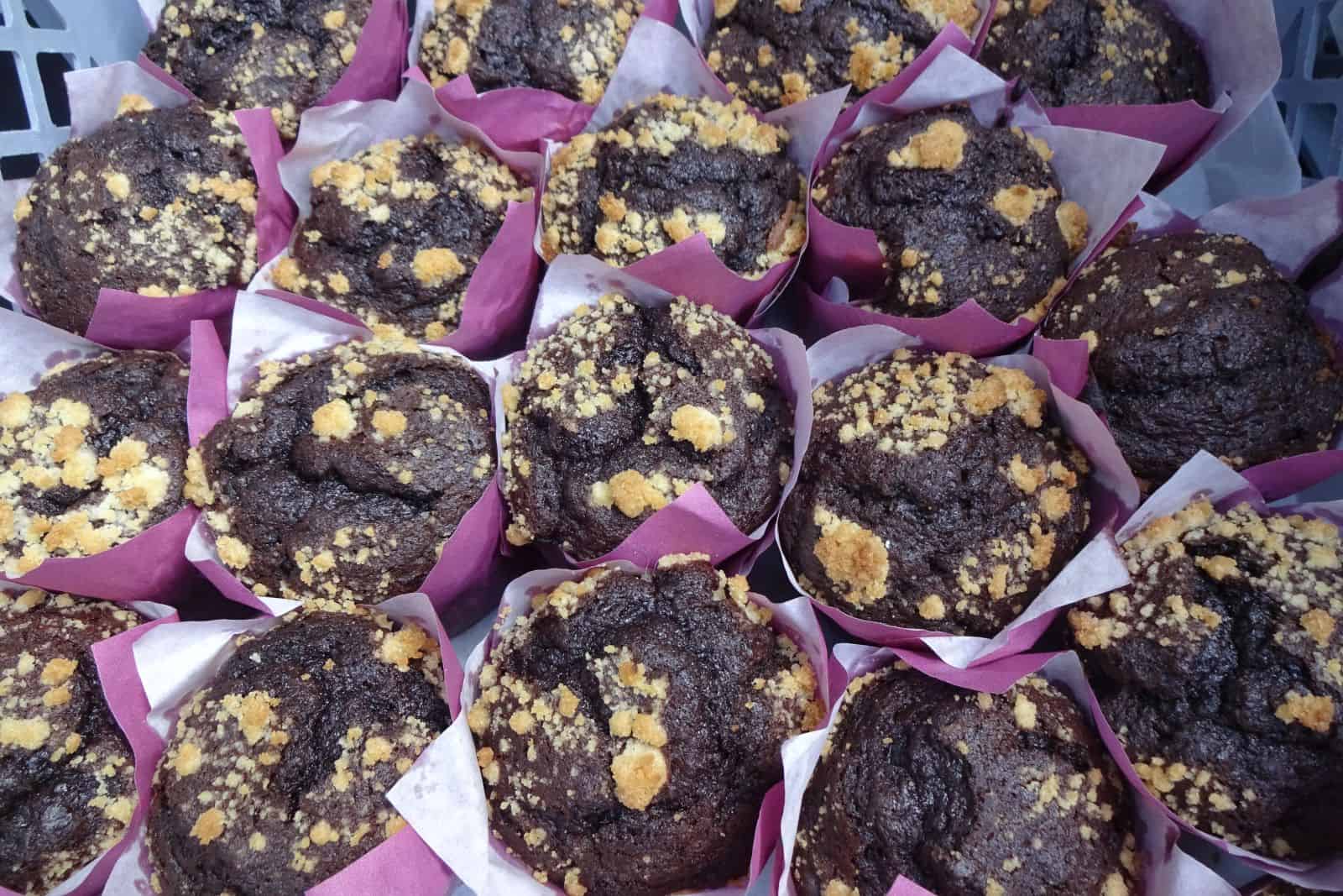Zur Stärkung verteilte Manuela Klausmann Schokomuffins von der Bäckerei Brantner. „Früher gab es ja immer den Erdbeerkuchen, aber das wurde wegen der vielen Vorschriften immer schwieriger. Und den Erdbeerkuchen mussten meist die Mamas essen, die Muffins werden von den Kindern verspeist.“