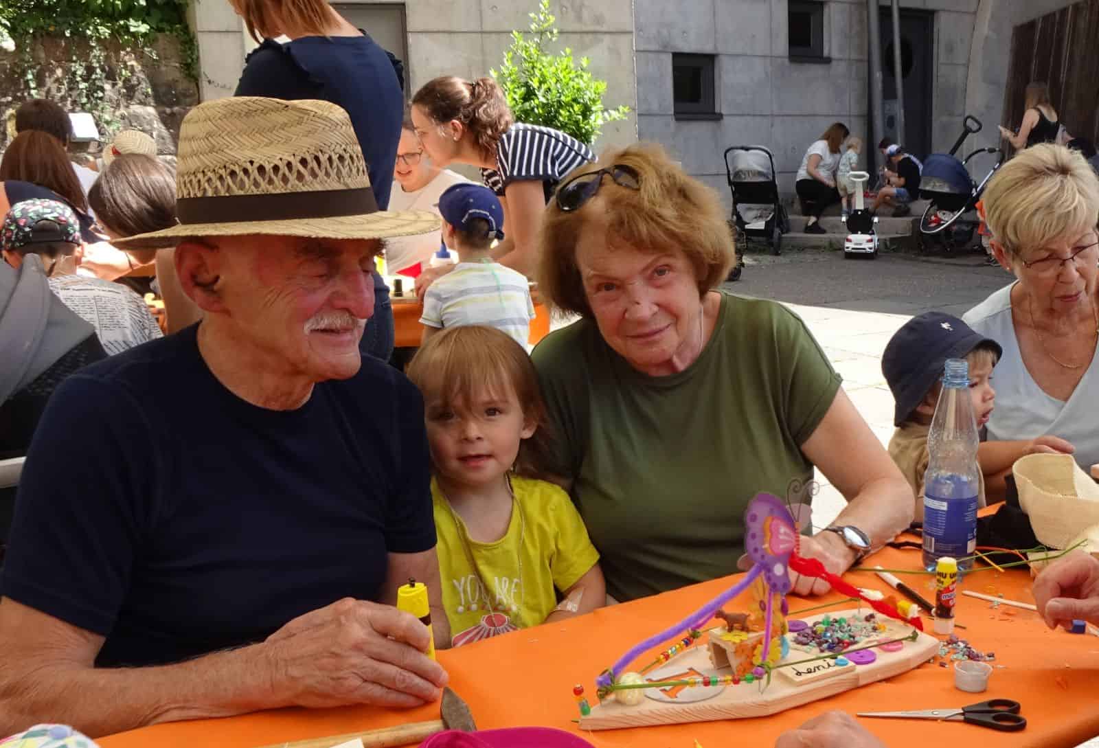 Mama und Oma schauten kritisch die drei Zuber an, die sie gebastelt hatten. „Eine Stunde haben wir schon gebraucht, aber es hat Spaß gemacht.“ Eine andere Oma meinte: „Ich bin zum ersten Mal da und war etwas überfordert, was es da alles gibt.“ Ihre Enkelin wollte den Zuber ganz in lila, während der Enkel eher grün bevorzugte.