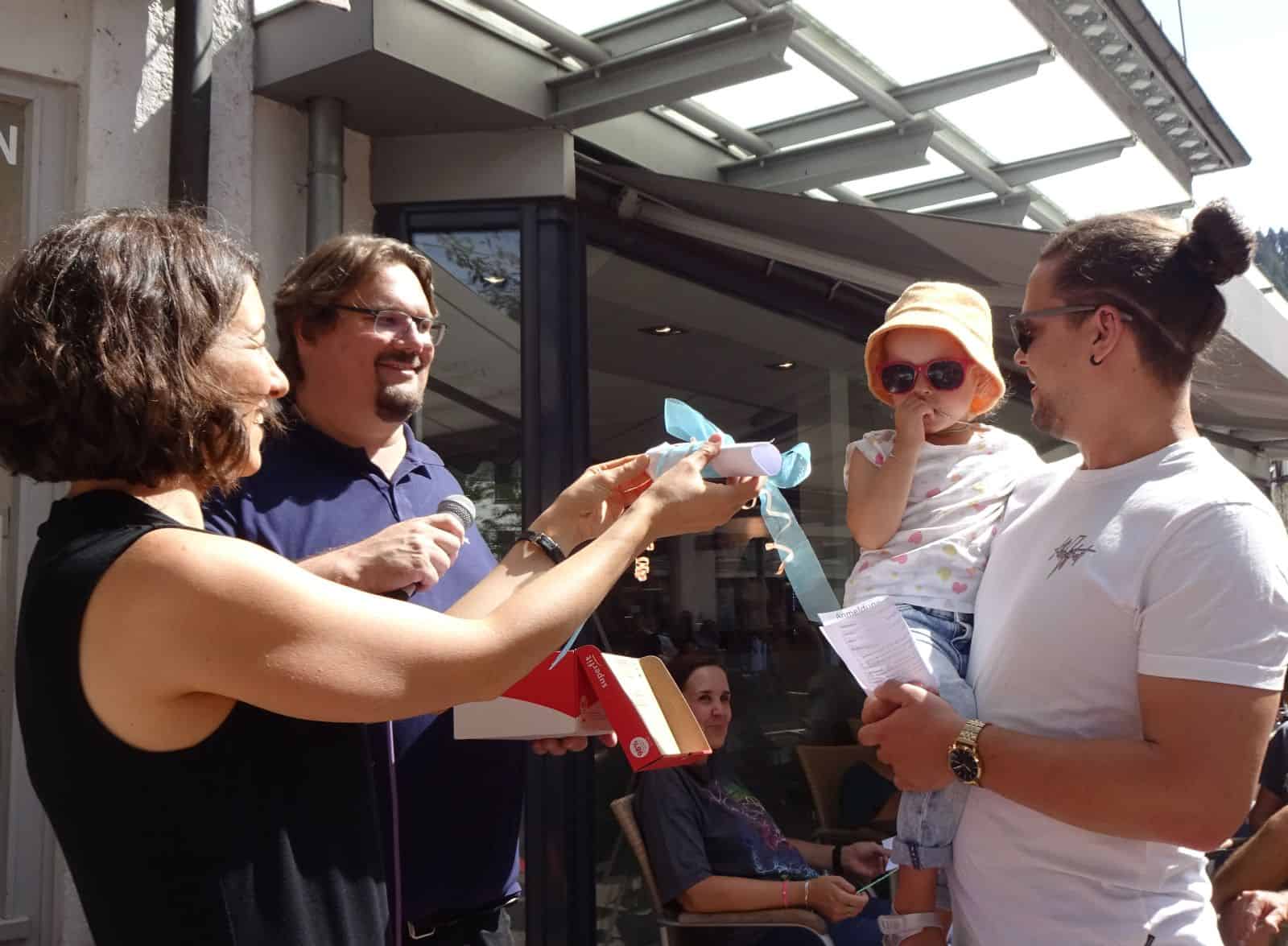 „Alle Zuber sind so toll, da konnten wir keine Bewertung machen,“ so Bühler. „Wir verlosen die beiden Preise unter allen Teilnehmenden“. Als Glücksfee fungierte Eisenlohr. Einen Preis erhielt die dreijährige Sophie Airich mit der Startnummer 32, den anderen die 8-jährige Lena Schreiber mit der 81.