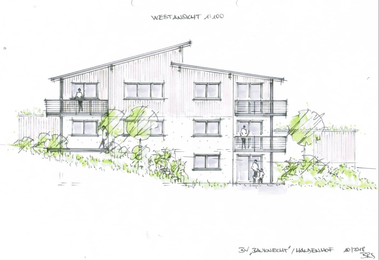 Die Festlegungen aus den Gemeinderatsvorlagen und –beschlüssen vom April 2001 zum Baugebiet „Haldenhof“ wonach dort 51 Einfamilienhäuser vorgesehen seien, hätten „aus unerklärlichen Gründen keinen Eingang in den Bebauungsplan gefunden“, so Haas. Juristisch zähle allein, was im Bebauungsplan stehe. Und dessen Vorgaben hält der Bauknecht-Entwurf ein.