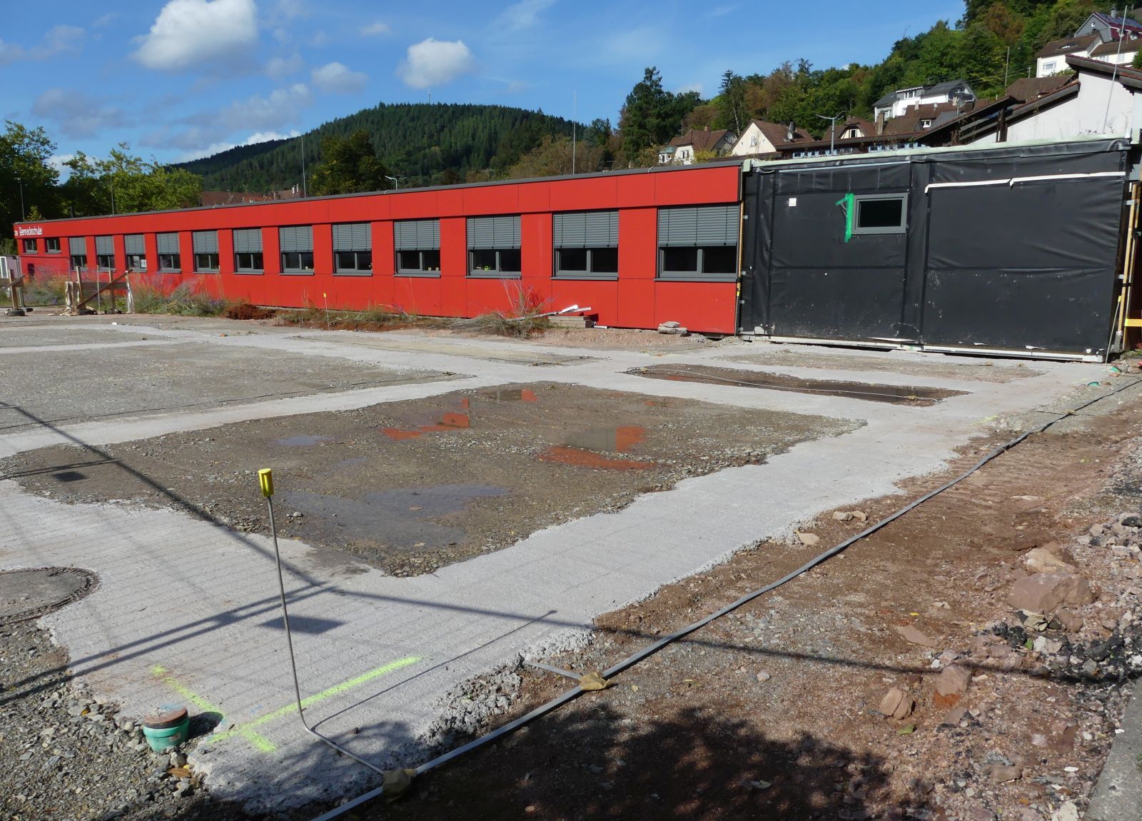 Die Stadt beklagt sich über den Auftragnehmer, ein Horber Bauunternehmen. Trotz Verzugsanzeigen sei „keine signifikante Beschleunigung“ festzustellen. Die Zusage, dass die Module in der Zeit bis zum 22. September geliefert würden, habe die Stadt nur mündlich. Inzwischen hat die Stadt eine Freiburger Anwaltskanzlei eingeschaltet.