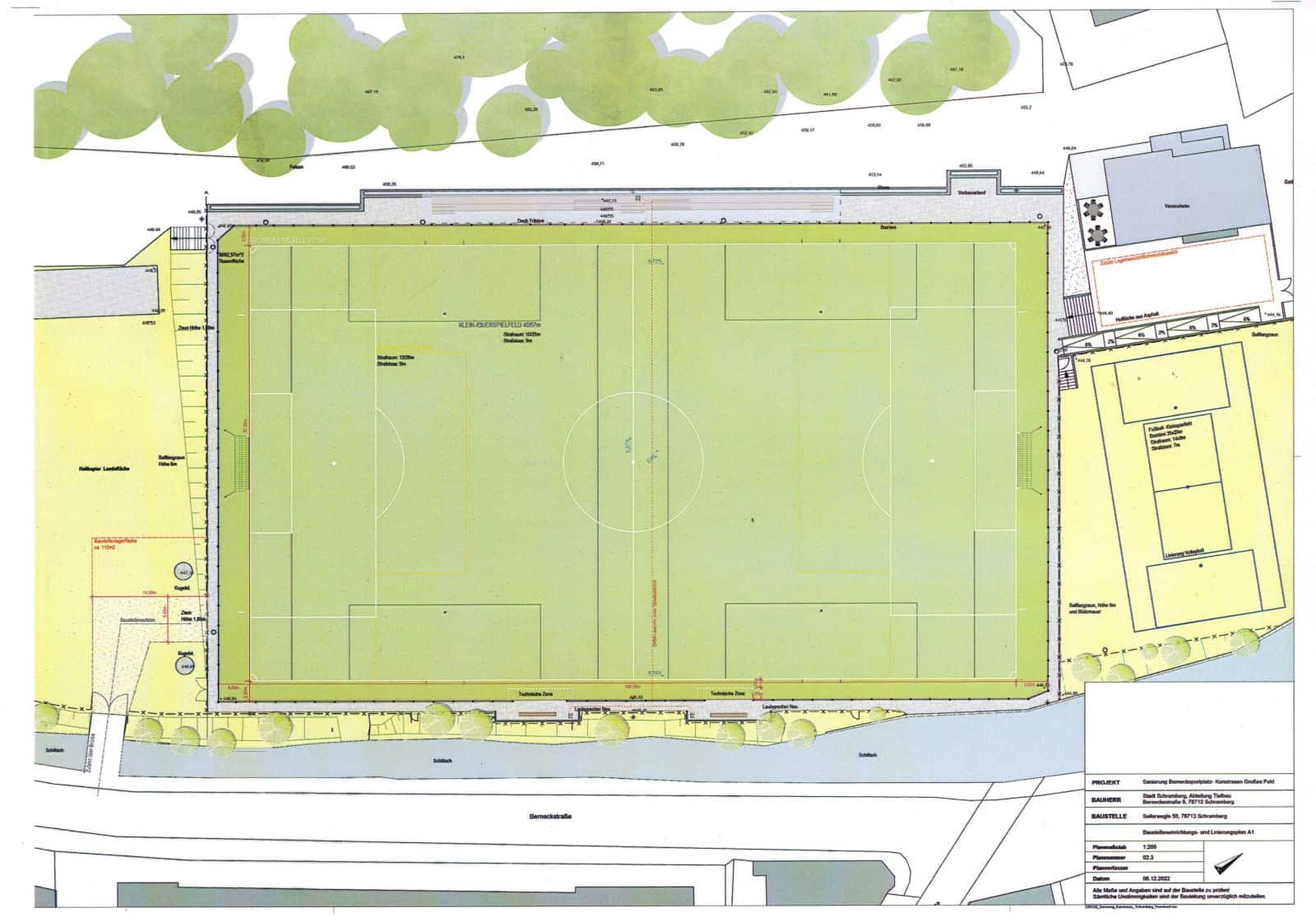 Noch zu lösen ist die Frage, wo während der Bauzeit der Hubschrauberlandeplatz hin verlegt werden soll. Denn die Fläche des Kleinspielfelds werde die Firma für ihre Materialien und Maschinen brauchen.