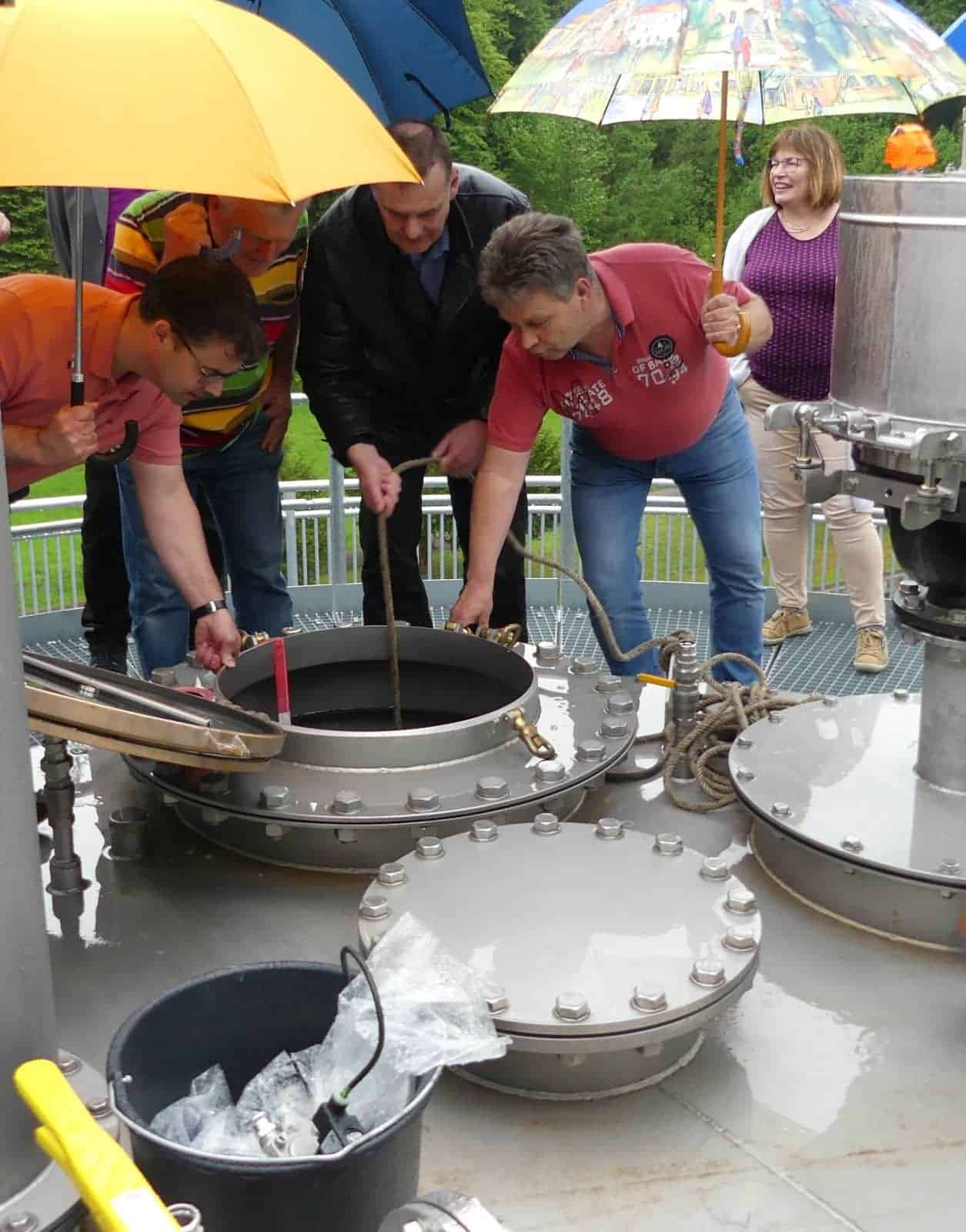 Derzeit füllen die Klärwerker den Turm langsam mit Wasser. Wenn der Turm halb gefüllt ist, gebe man langsam Schlamm dazu, um den Faulprozess in Gang zu bringen. Dazu muss das Gemisch auf eine Temperatur von 35 bis 37 Grad gebracht werden. „Wir nutzen dazu auch die warmen Tage jetzt.“ Ende September könnte der neue Turm das erste Gas liefern.