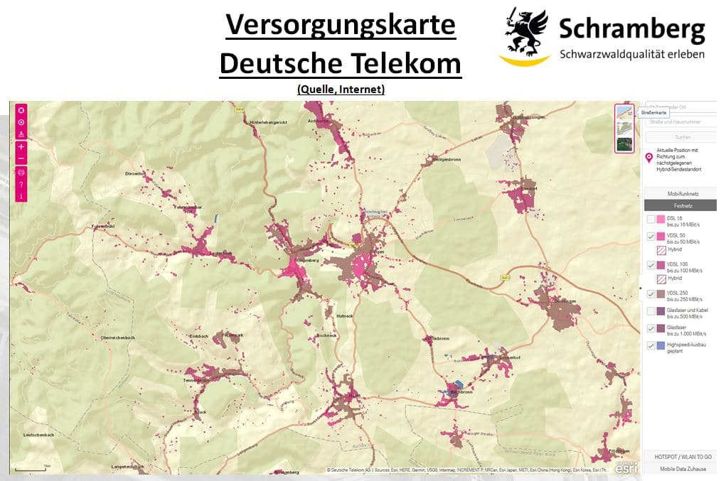 Karte der Telekom zeigt Internetversorgung in Schramberg. Grafik: Stadt